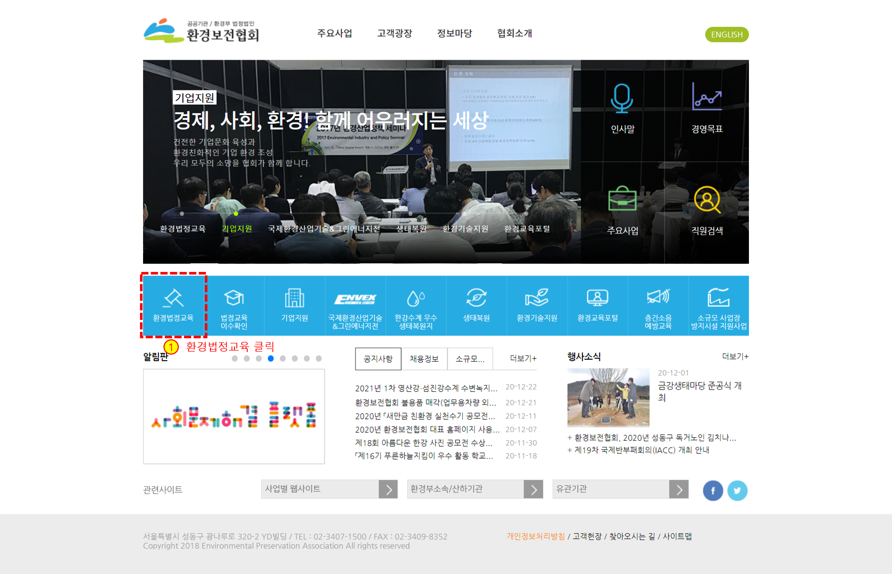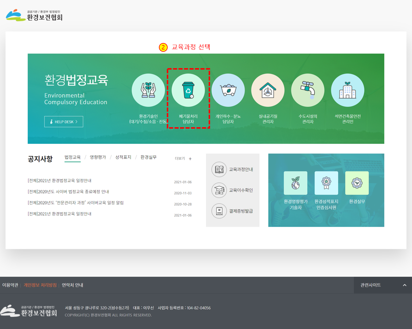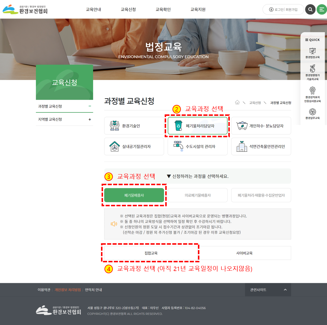 1) 환경보전협회 법정교육 홈페이지에서 교육신청