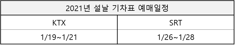 고향에 가기위한 교통수단은 많으나, 그중 기차표 예매일정을 알아봤습니다.