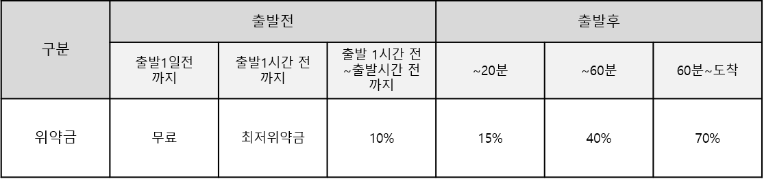 - 반환위약금: 주말(금~일, 공휴일) 기준 위약금 적용