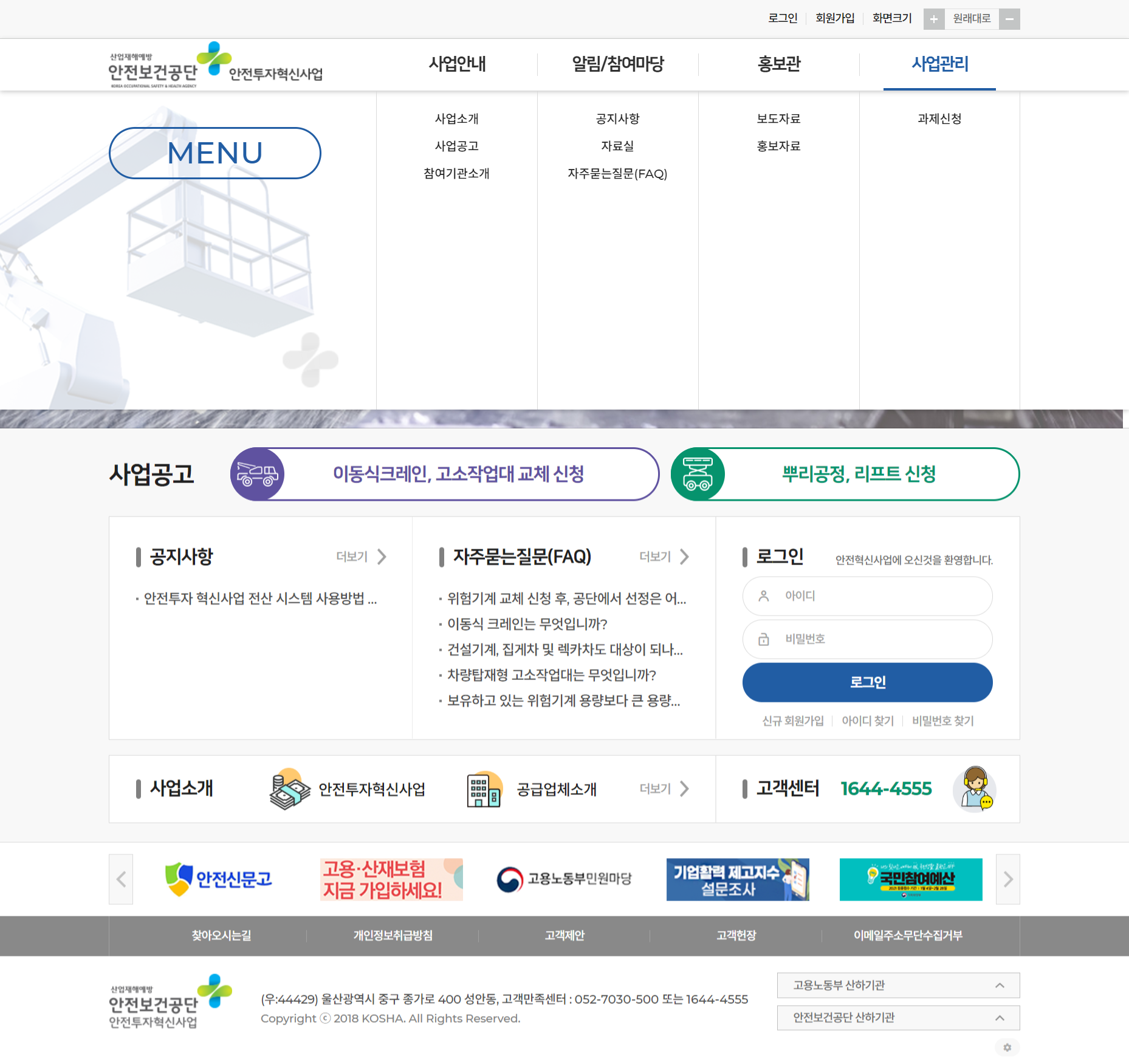 현재 사업공고가 올라온 사업은 고소작업대와 이동식 크레인 교체에 대해 2월 1일부터 신청을 받고 있으니 준비해서 빨리 신청해야겠습니다.