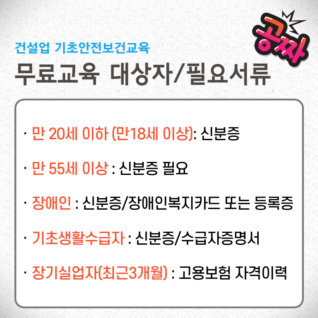 ※ 아래에 해당되시는분은 무료교육을 받을 수 있으니 시간이 되실때 받아두는 것도 좋을 것 같습니다.