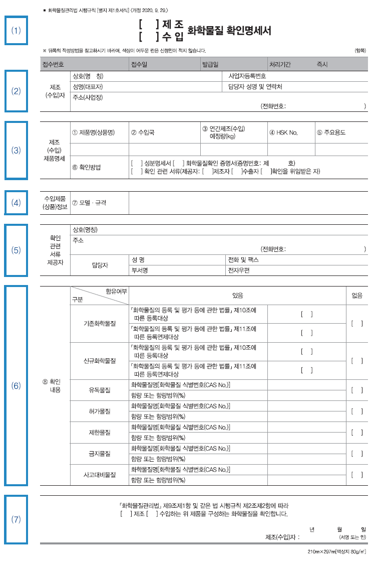 - 화학물질관리법 시행규칙 제2조(화학물질확인)