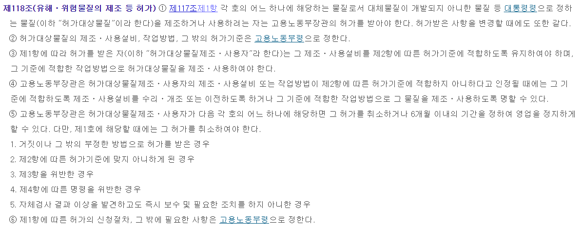 허가대상물질 허가방법 및 절차 (산업안전보건법 제118조)