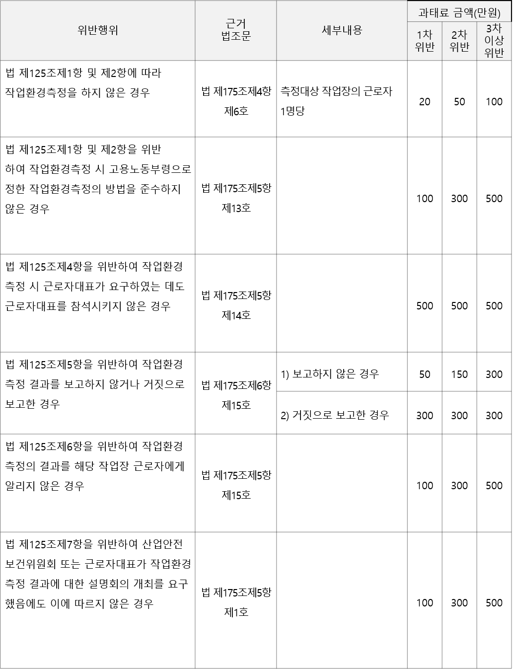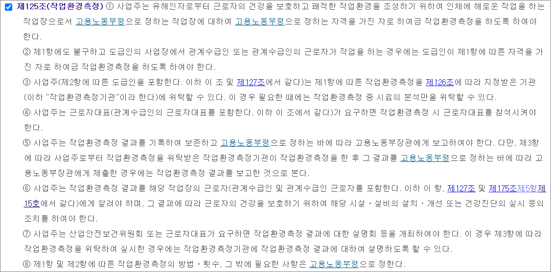 산업안전보건법 제125조(작업환경측정 등)