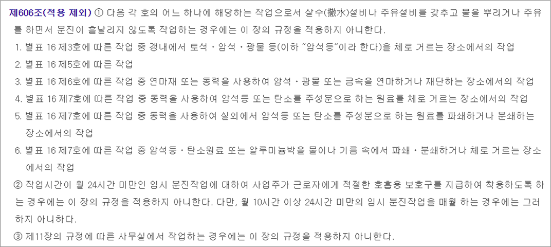 - 분진적용제외 작업장(보건규칙 제606조 2항)