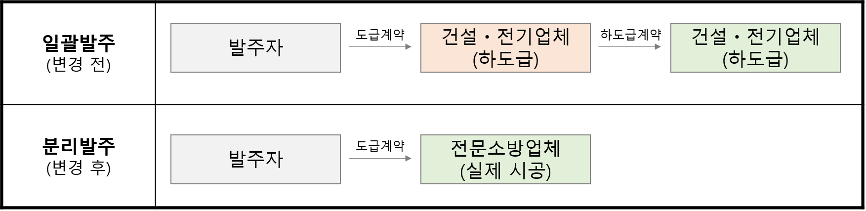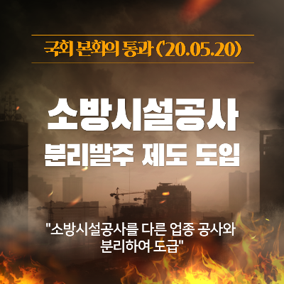 건설산업 기본법(제2조)에서 건설공사에 포함되지 않는 4개 업종 중 소방만 분리발주를 미실시 하여 전문 소방공사업체의 경우, 저가 하도급에 의존하고 있어 소방시설 부실공사 등으로 국민 피해 발생