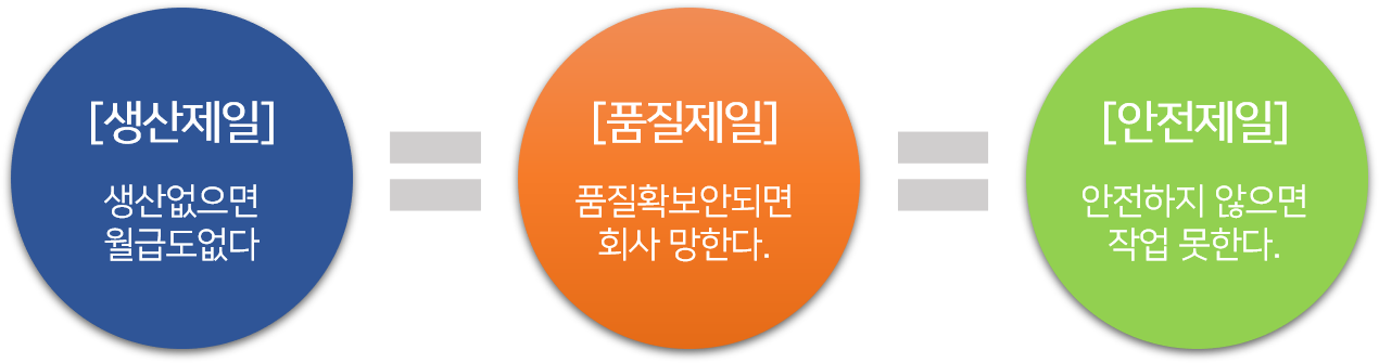 생산부서는 생산제일, 품질부서는 품질 제일, 안전부서는 안전제일