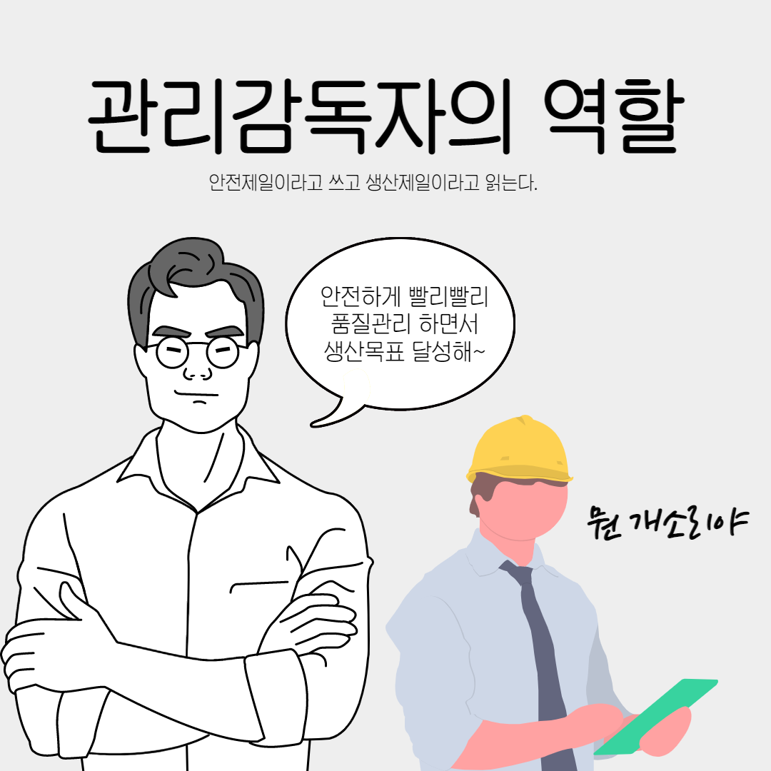 관리감독자라면 항상 마음속에 담아두는 내용일 것이다. 관리감독자 교육 시 항상 역할에 대해 강조하고 법적인 것을 주입해도 결론은 항상 같다. 한편으로는 관리감독자들이 더 대단한 사람들일 수도 있다. 안전관리자는 안전관리자 업무만 하라고 하지만 관리감독자들은 생산, 품질, 안전, 기타 등등의 업무들까지 수행해야 하기 때문이다.
