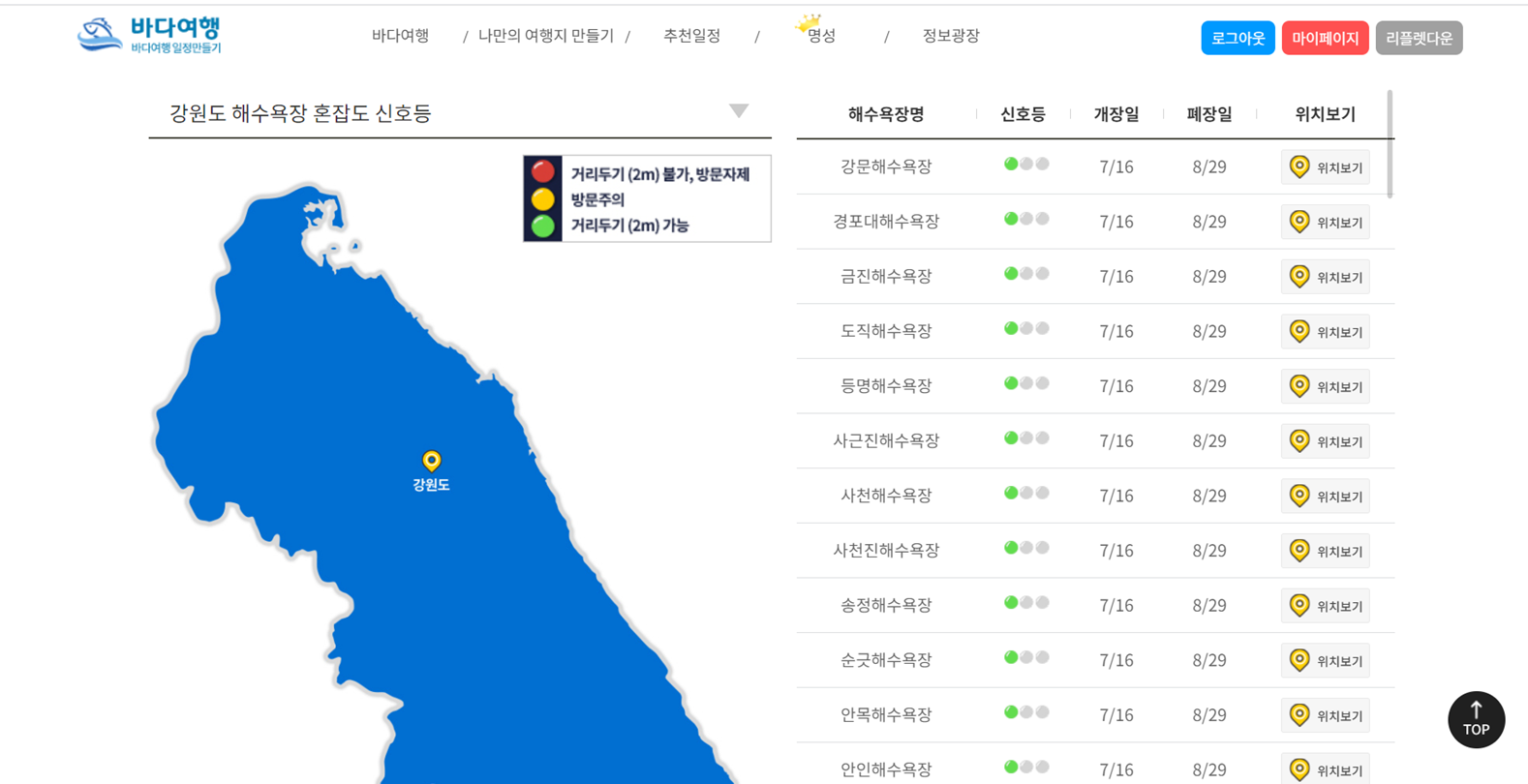 [해수욕장 혼잡도 확인방법]