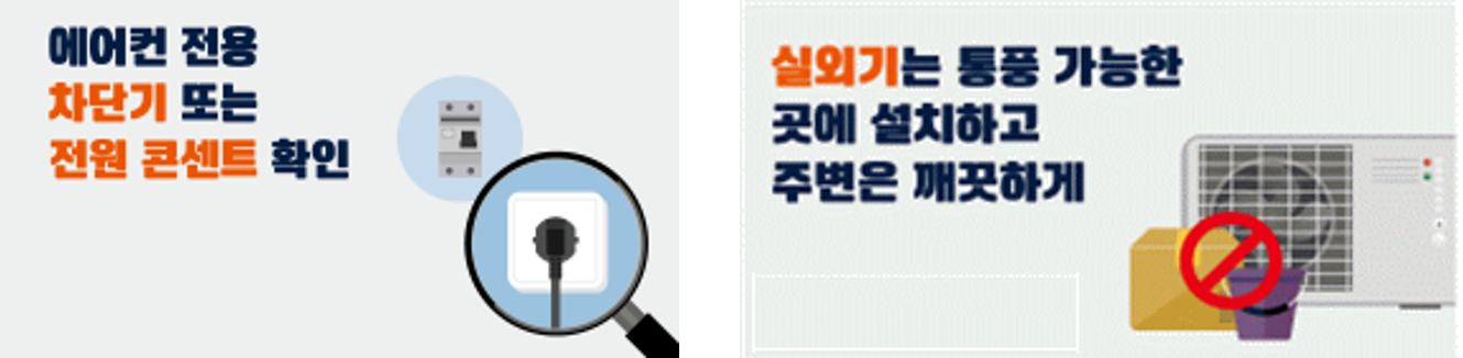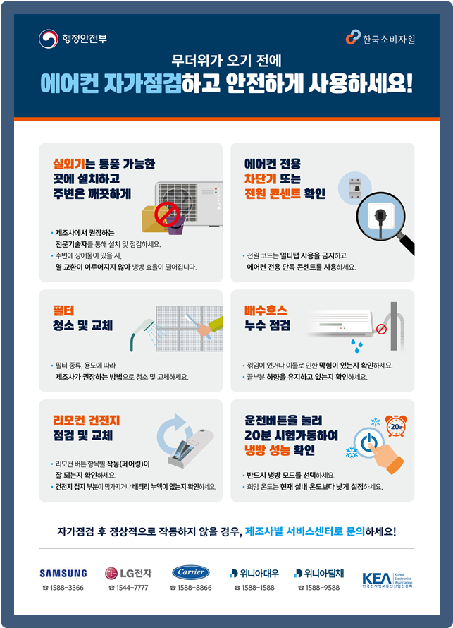 ※ 여름철 에어컨 안전사고 예방을 위하여 행정안전부와 한국소비자원은 주요 에어컨 제조사와 협력하여