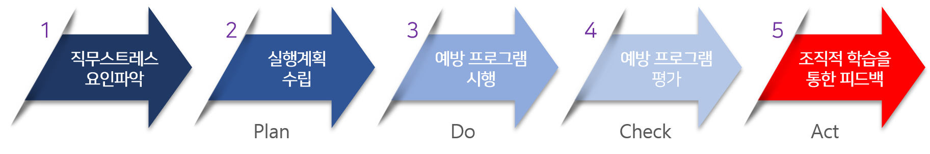 3) 수립된 전략을 토대로 직무스트레스 예방 프로그램을 실행하고 적용