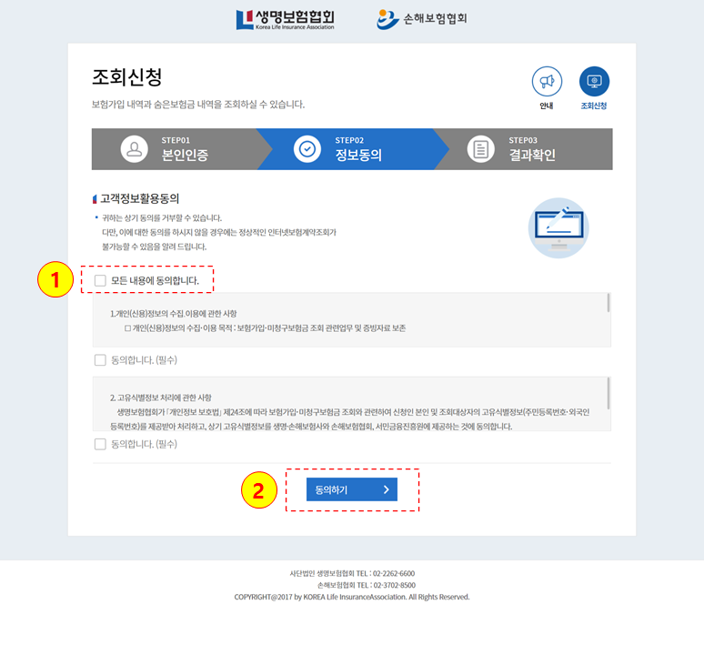 동의하기를 클릭하면 30초간 본인의 보험가입을 조회하기 시작합니다.