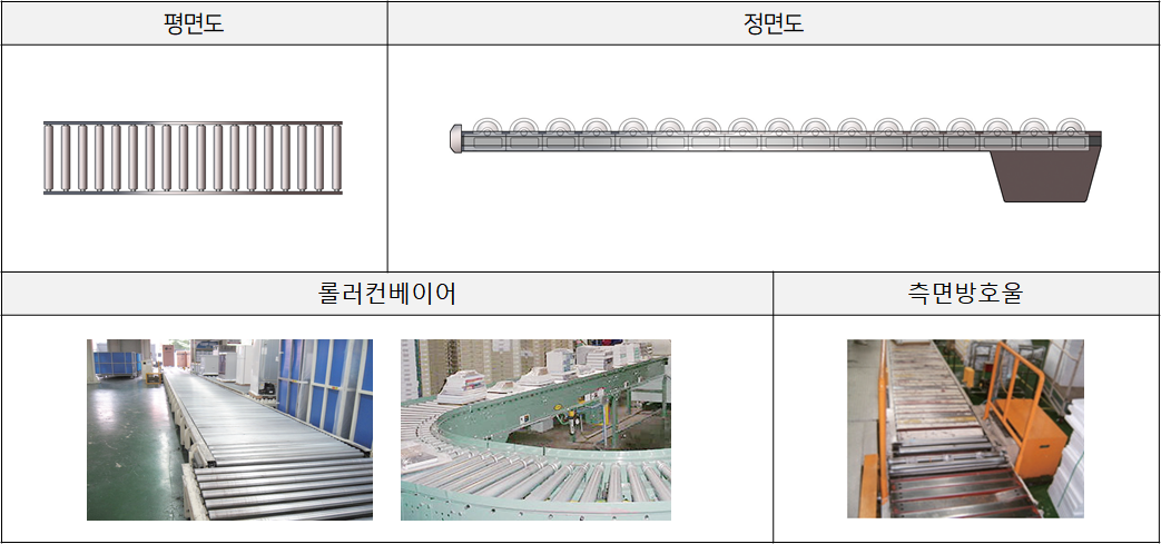 하나의 프레임에 의해 지탱되는 롤러로써 그 위로 수동, 중력, 동력에 의해 물체를 옮겨가는 장치로 금속제 또는 플라스틱제 롤러를 회전시켜서 그 위에 물건을 올려놓고 연속으로 운반하는 장치로 측면에 체인이 연결되어 전동기로 회전시켜서 구동하는 컨베이어