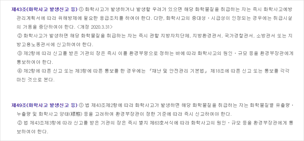 - 화학물질관리법 제43조