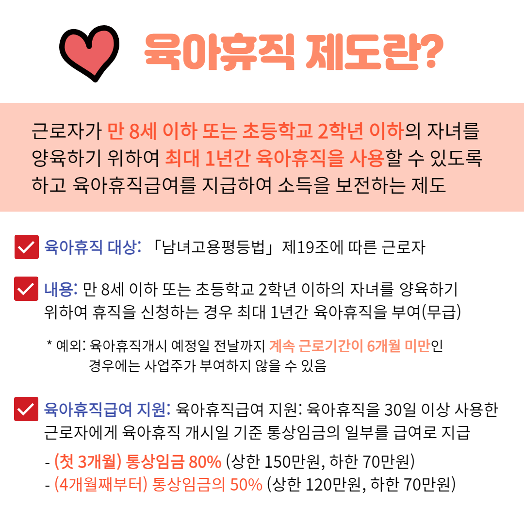 누구보다 소중한 아이를 위한 육아휴직 결정, 어렵게 생각하지 마세요 일하면서 행복하게 아이를 키울 수 있고 행복한 가정을 꾸릴 수 있는 날이 오기를 기대해 봅니다.