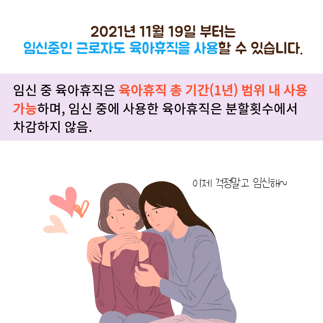 임신 중인 근로자도 육아휴직 사용하능하게끔 개정하는 데에도 출산율을 높이기 위한 하나의 방법이라고 생각하지만 큰 성과를 거두기에는 부족할 것 같다는 생각입니다. 물론 임신 중인 근로자분들은 정말 단비와 같은 소식일 수도 있습니다.