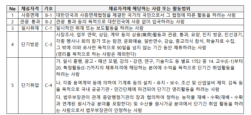 1) 단기체류비자