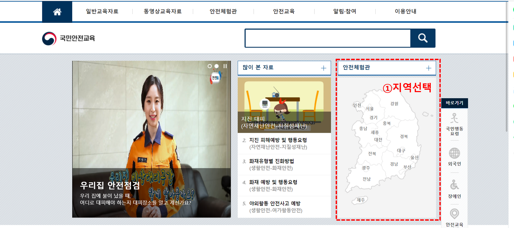 1. 국민안전교육 포털 접속 http://kasem.safekorea.go.kr/ptl/fms/main.do