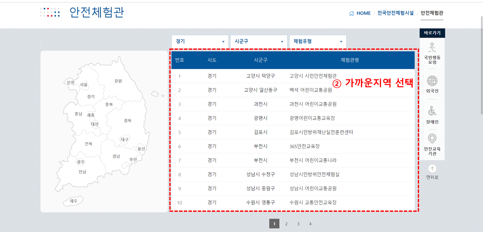 2. 주변 안전체험관 검색 및 예약