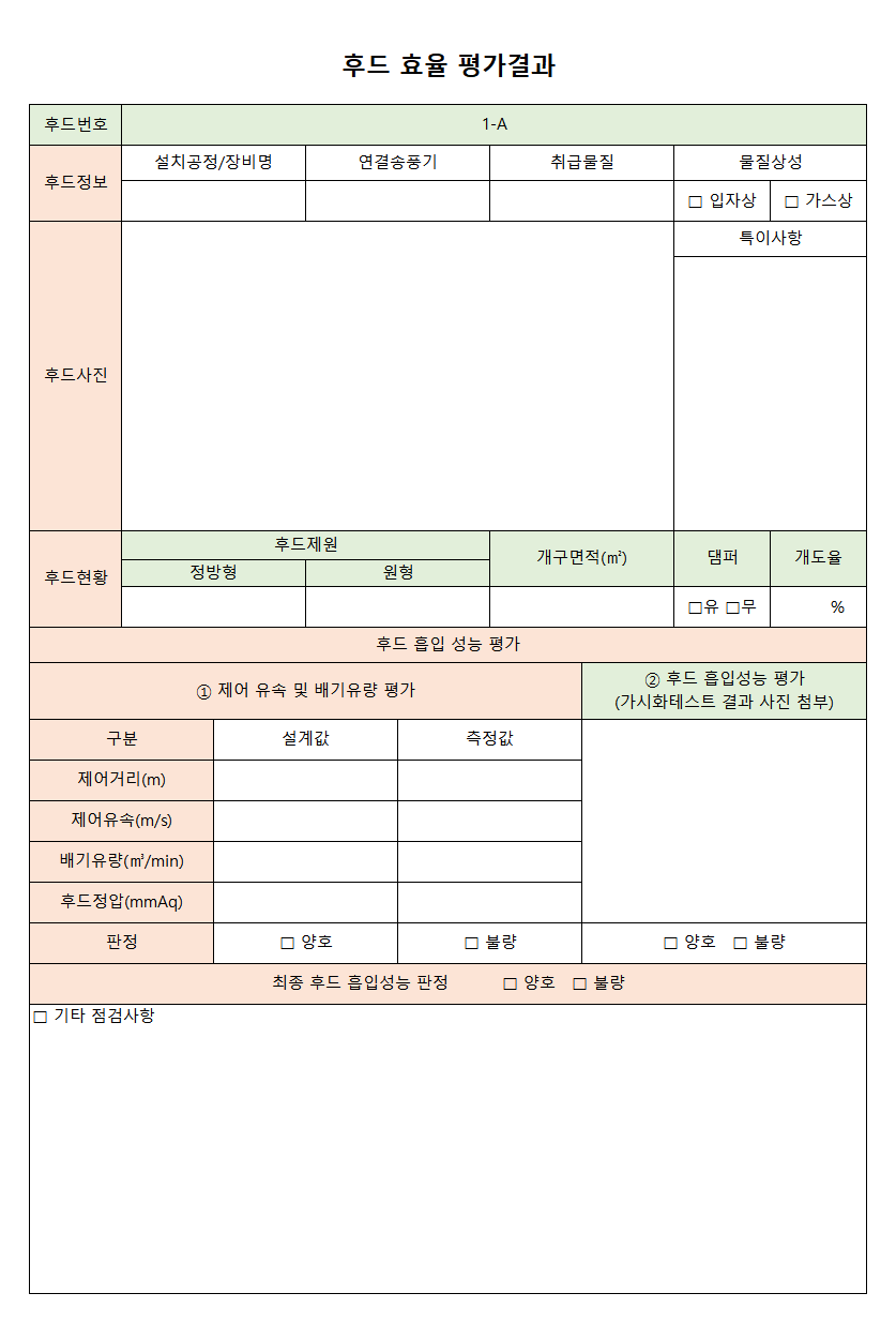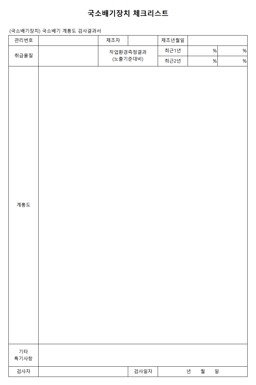 국소배기장치 검사는 아래의 체크리스트 내용에 따라 점검한다.