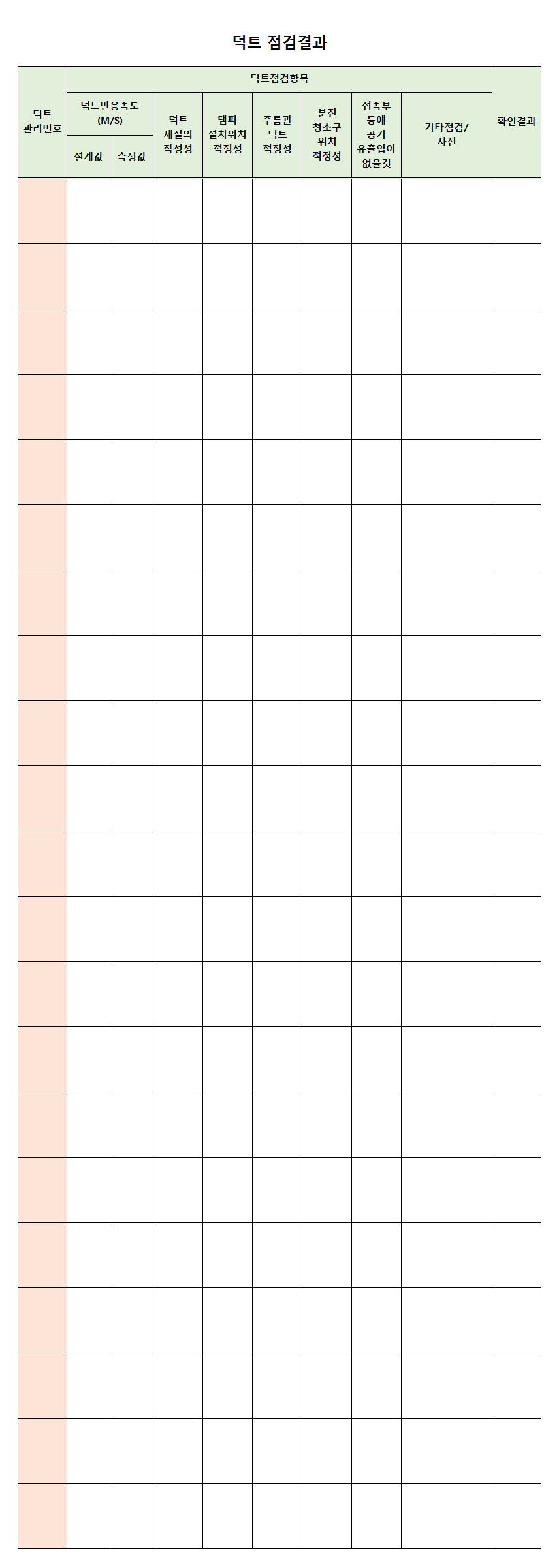 국소배기장치 검사는 아래의 체크리스트 내용에 따라 점검한다.