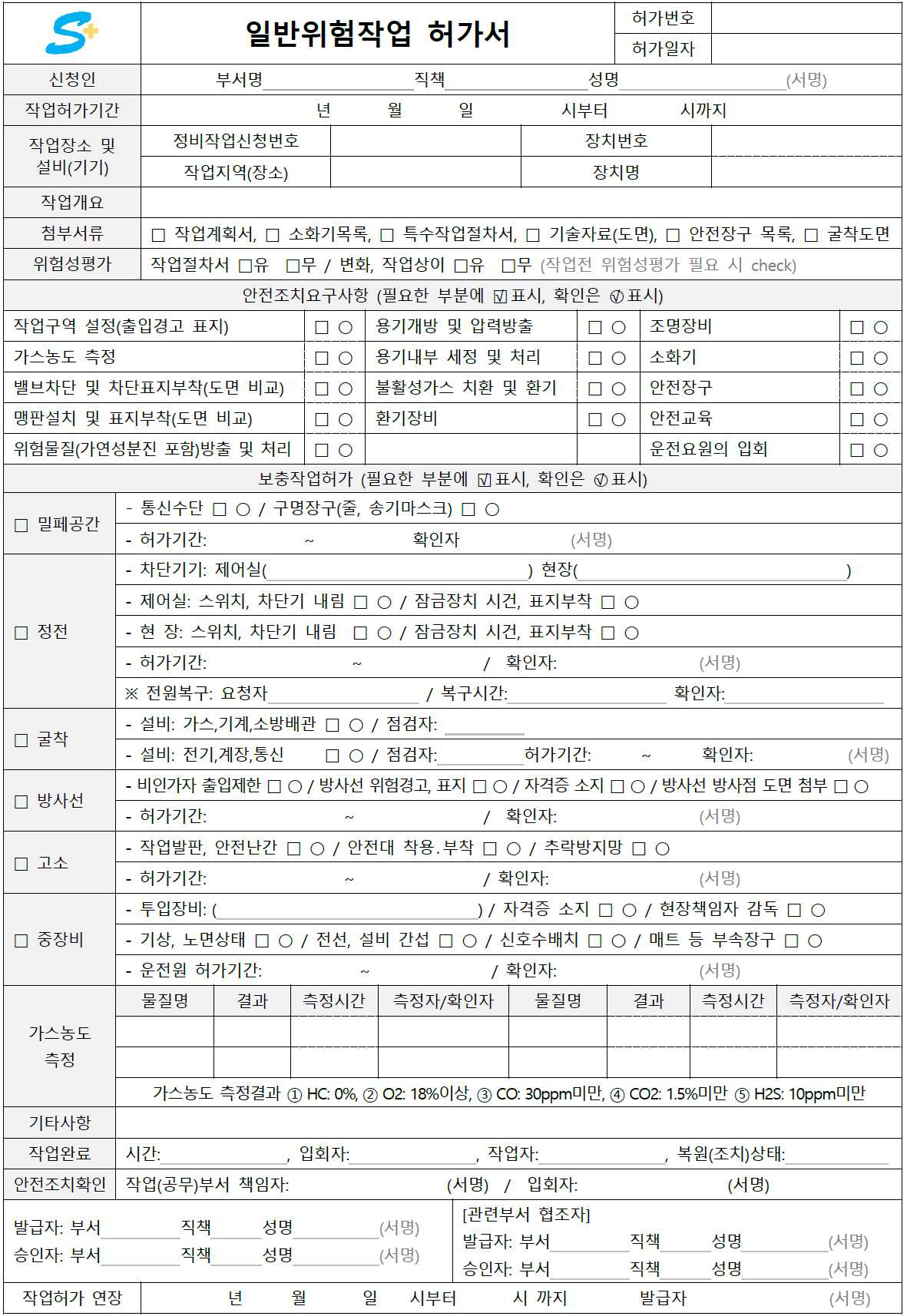 | 2. 일반위험작업허가 | 화기작업 이외의 모든 위험한 작업을 수행할 경우 | |