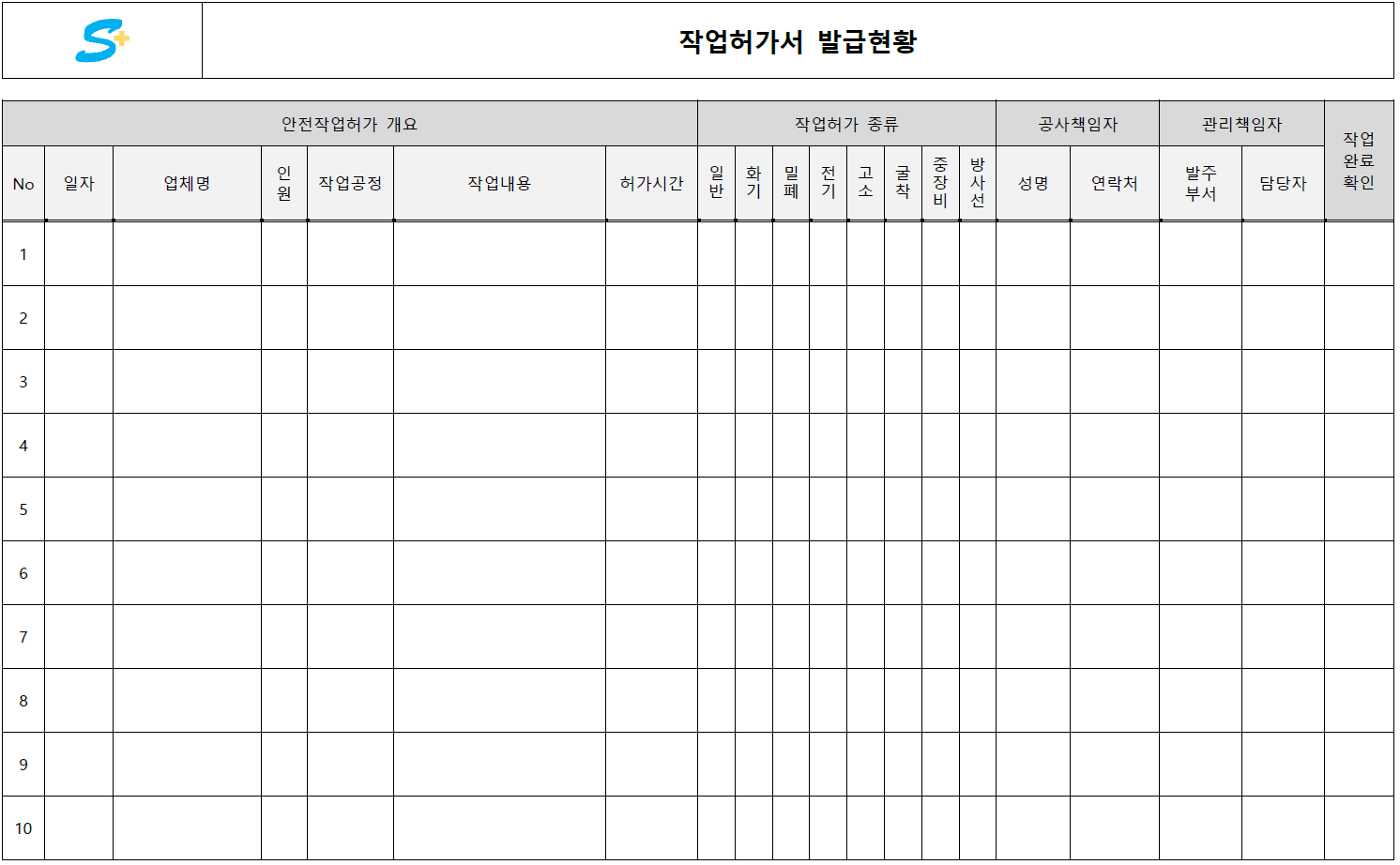 안전작업허가서 신청자는 허가서 양식을 사용하거나 전자문서 등으로 작업대상 지역의 운전부서 담당자가 현장확인을 통하여 발급한다. 보충작업허가 대상작업이 병행될 경우 확인자의 사전확인여부를 검토한 후 허가서를 발급한다.