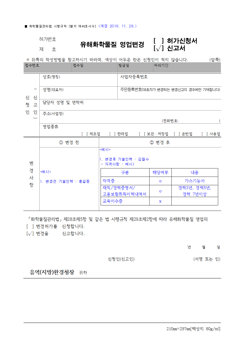 *참고사항(유해화학물질 영업자 변경신고 기준)