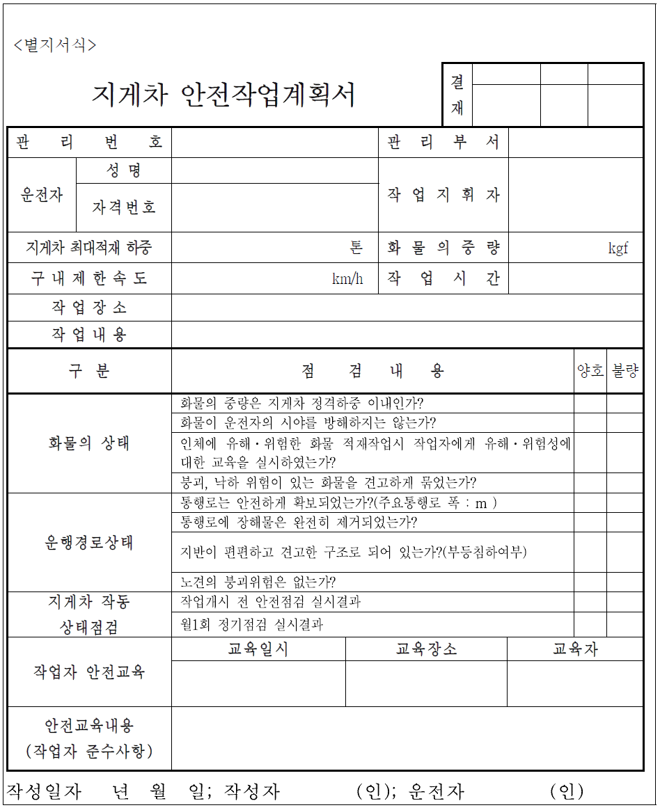 | 3톤미만 | 3톤이상 지게차조종면허 or 지게차조종교육과정(12시간) 이수자 |