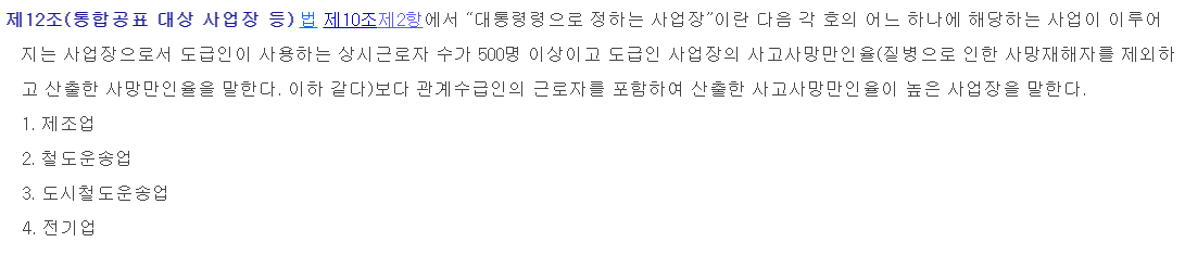 3) 산업안전보건법 시행령 제12조(통합공표 대상 사업장 등)