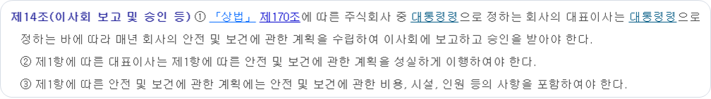 - 산업안전보건법 제14조(이사회 보고 및 승인 등)
