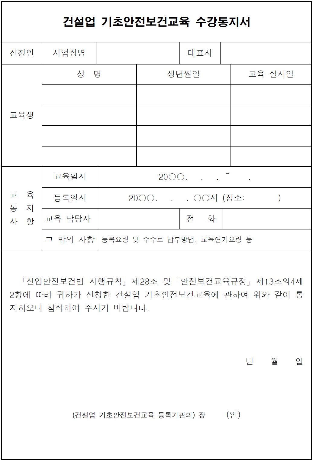 2) 수강통지서 발급