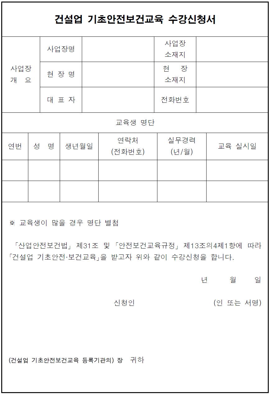 1) 등록된 교육기관에 수강신청서 제출