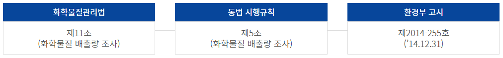 화학물질관리법 제11조, 동법 시행규칙 제5조, 환경부 고시 제2014-255호(’14.12.31)