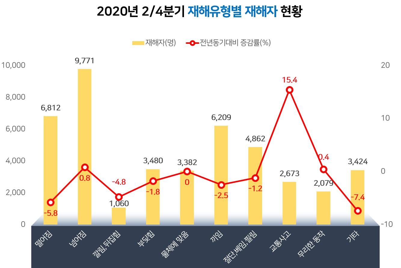 * 기타: 무너짐, 감전, 폴발ㆍ파열, 화재, 이상온도접촉, 빠짐ㆍ익사, 화확물질누출, 체육행사 등임