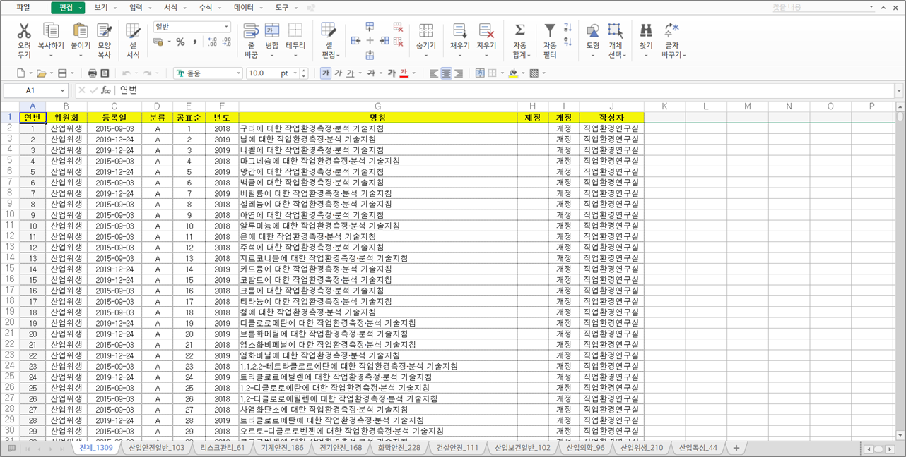 4) 안전보건지침 제정현황 파일 다운로드(전체목록확인 가능)