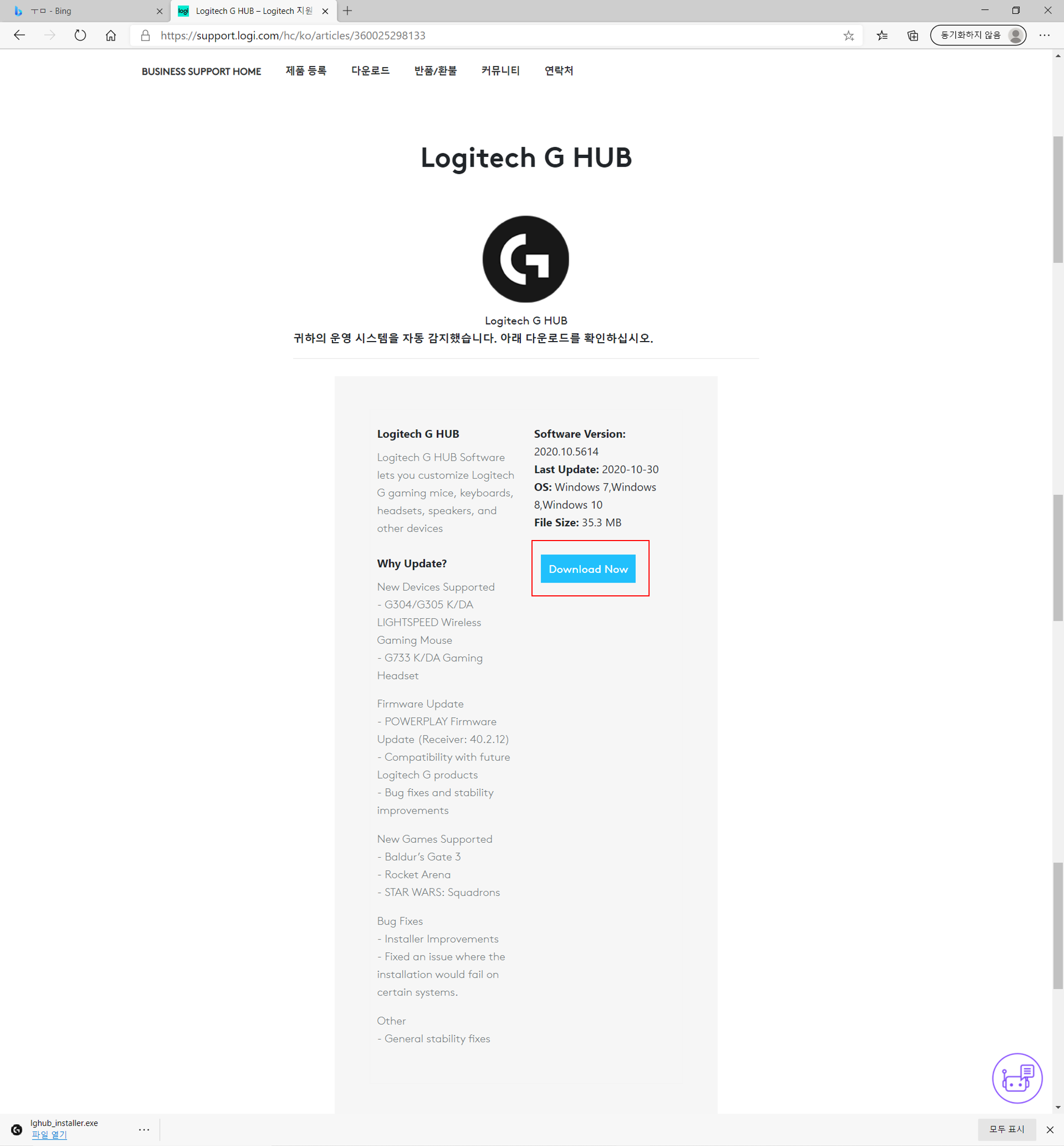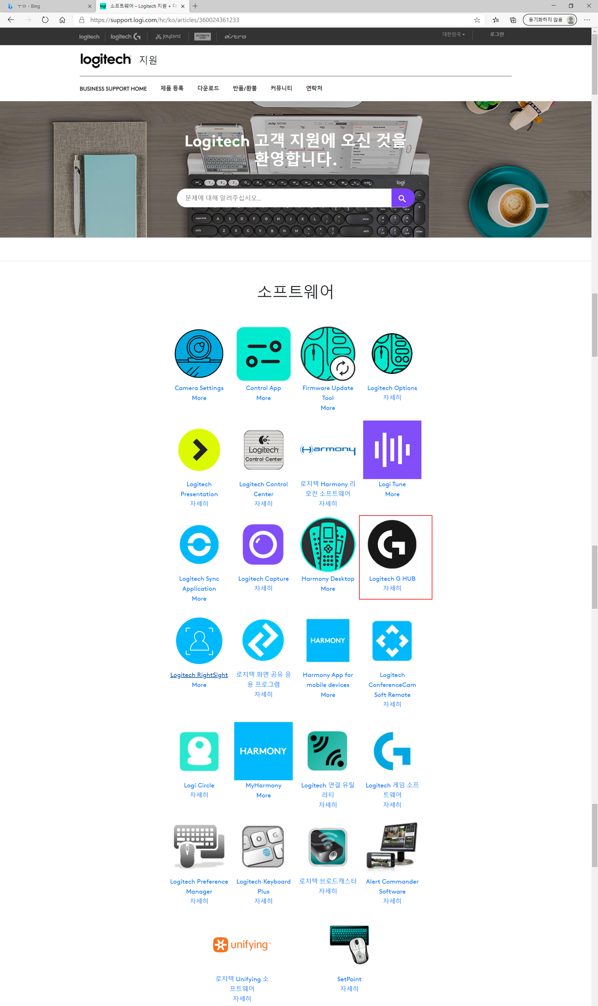 상세 설정을 위해서는 G-HUB를 설치해야 된다.