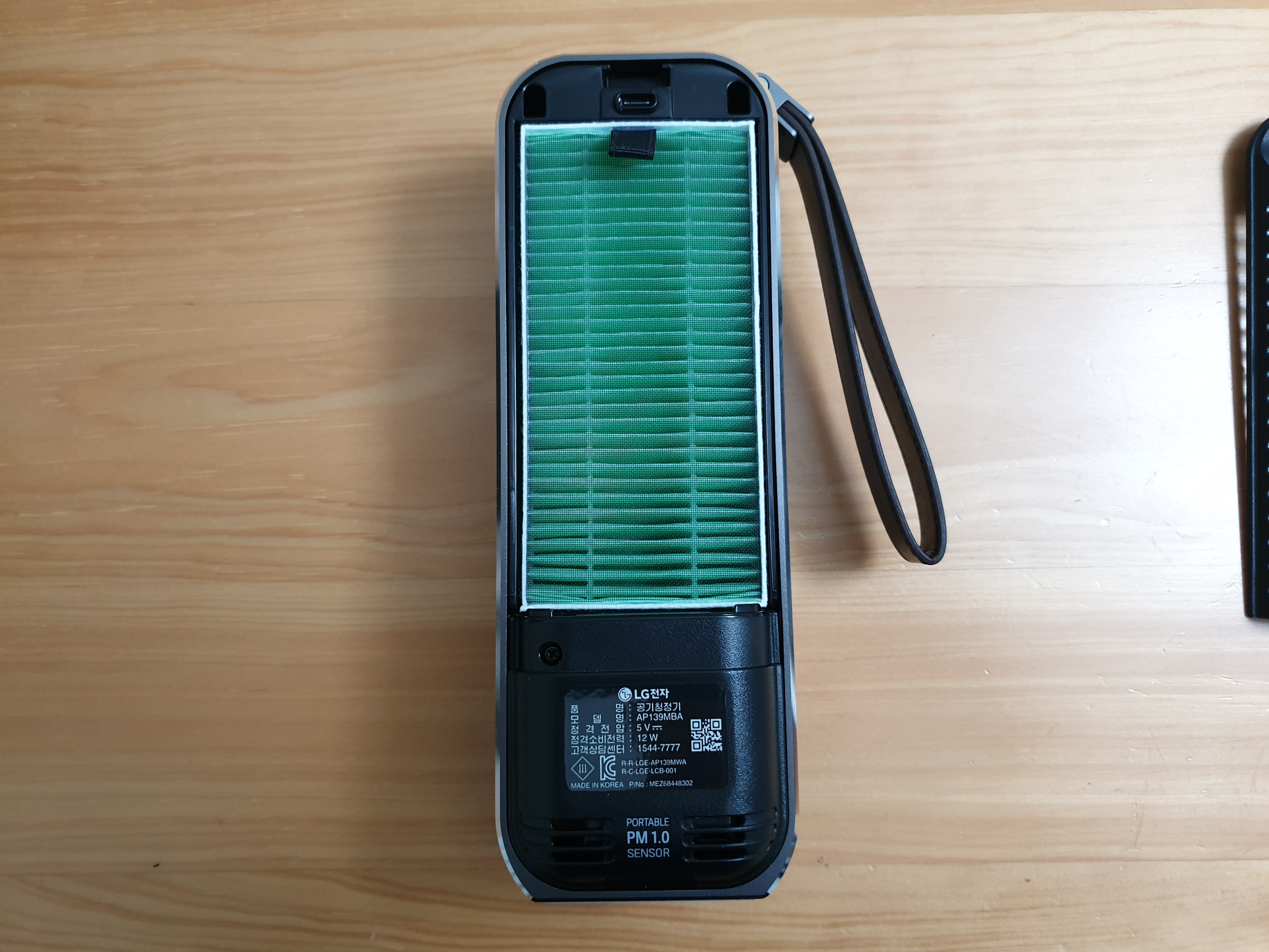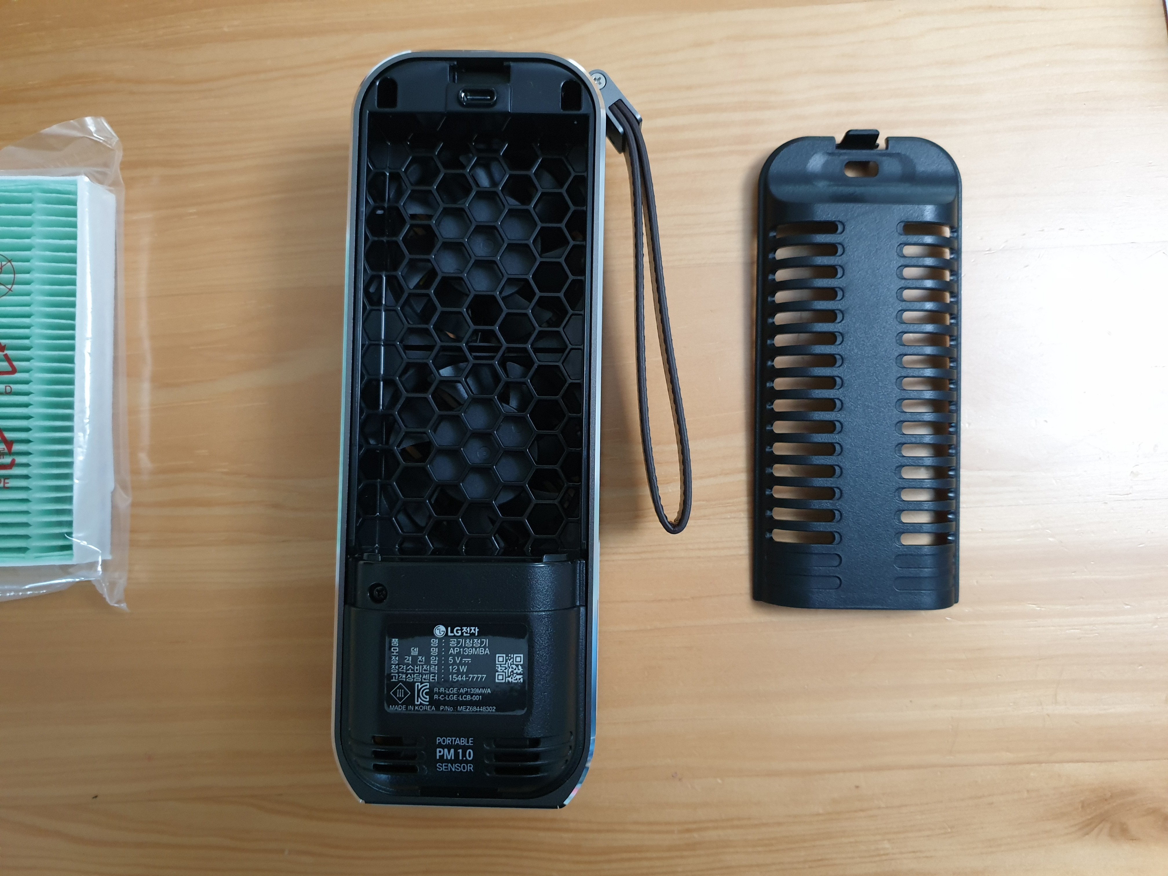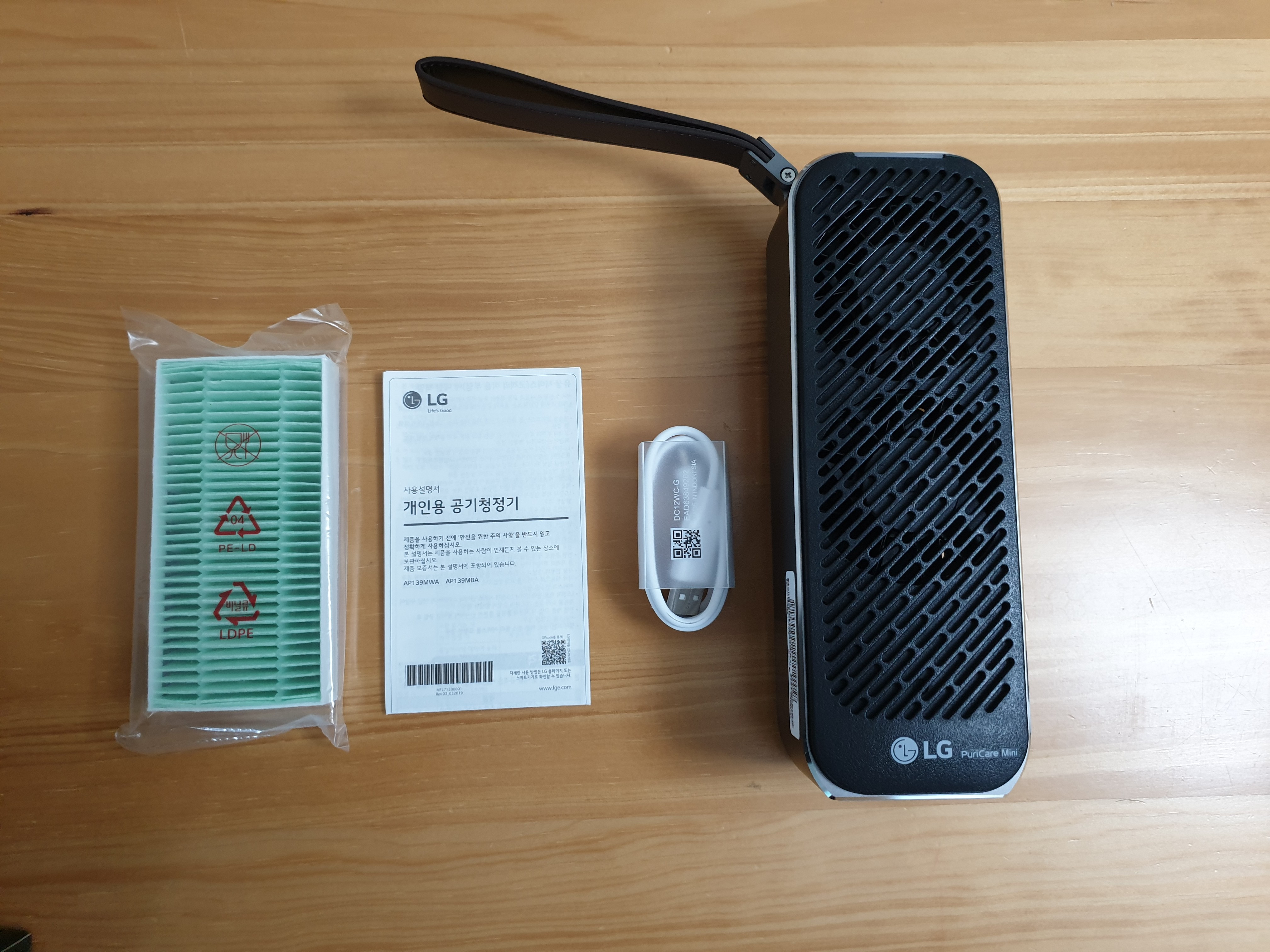 구성품은 간단합니다 필터, 설명서, 충전잭(충전기 미포함), 공기청정기