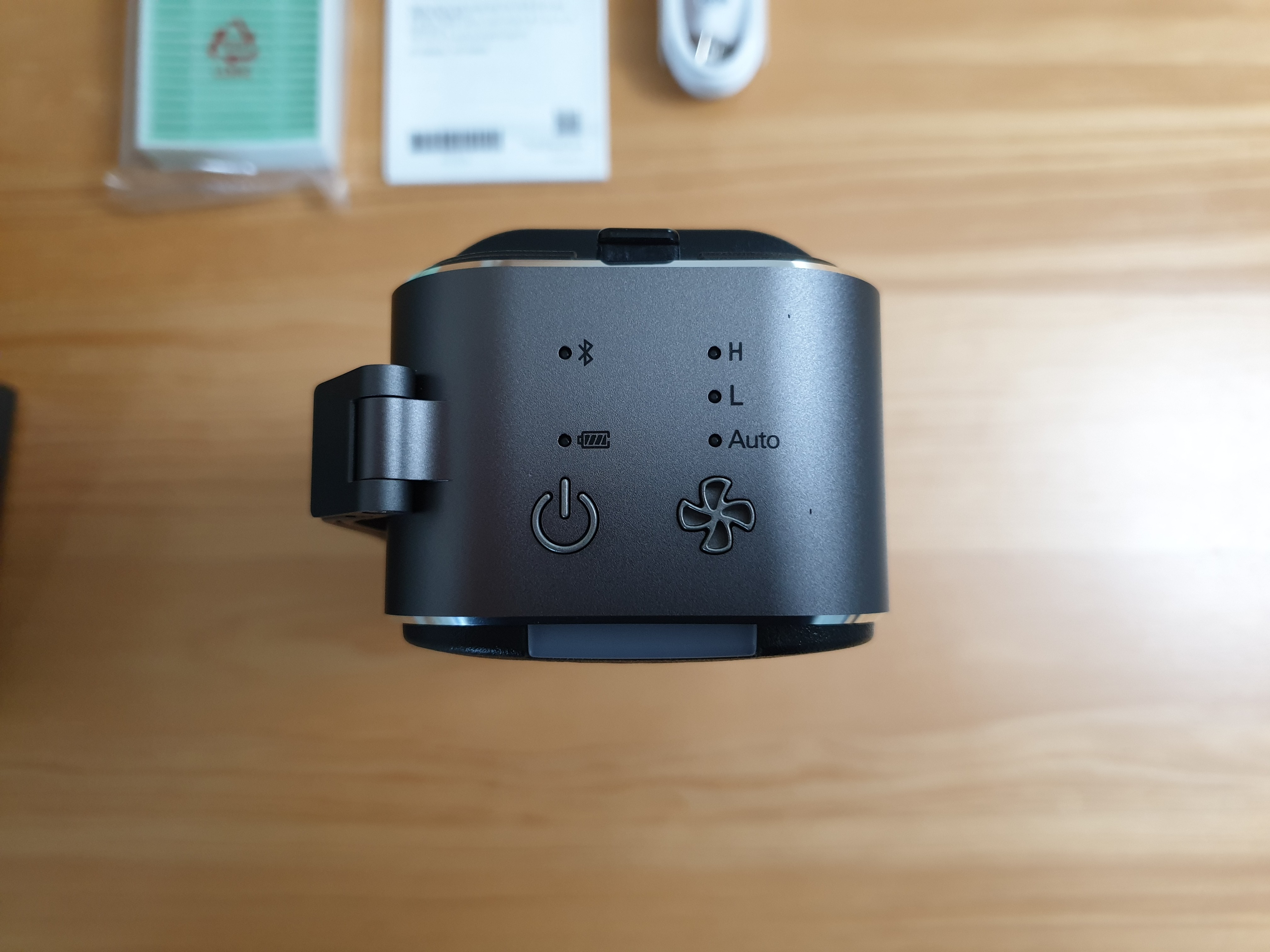 상단부에 전원버튼과 풍량조절 버튼이 있네요