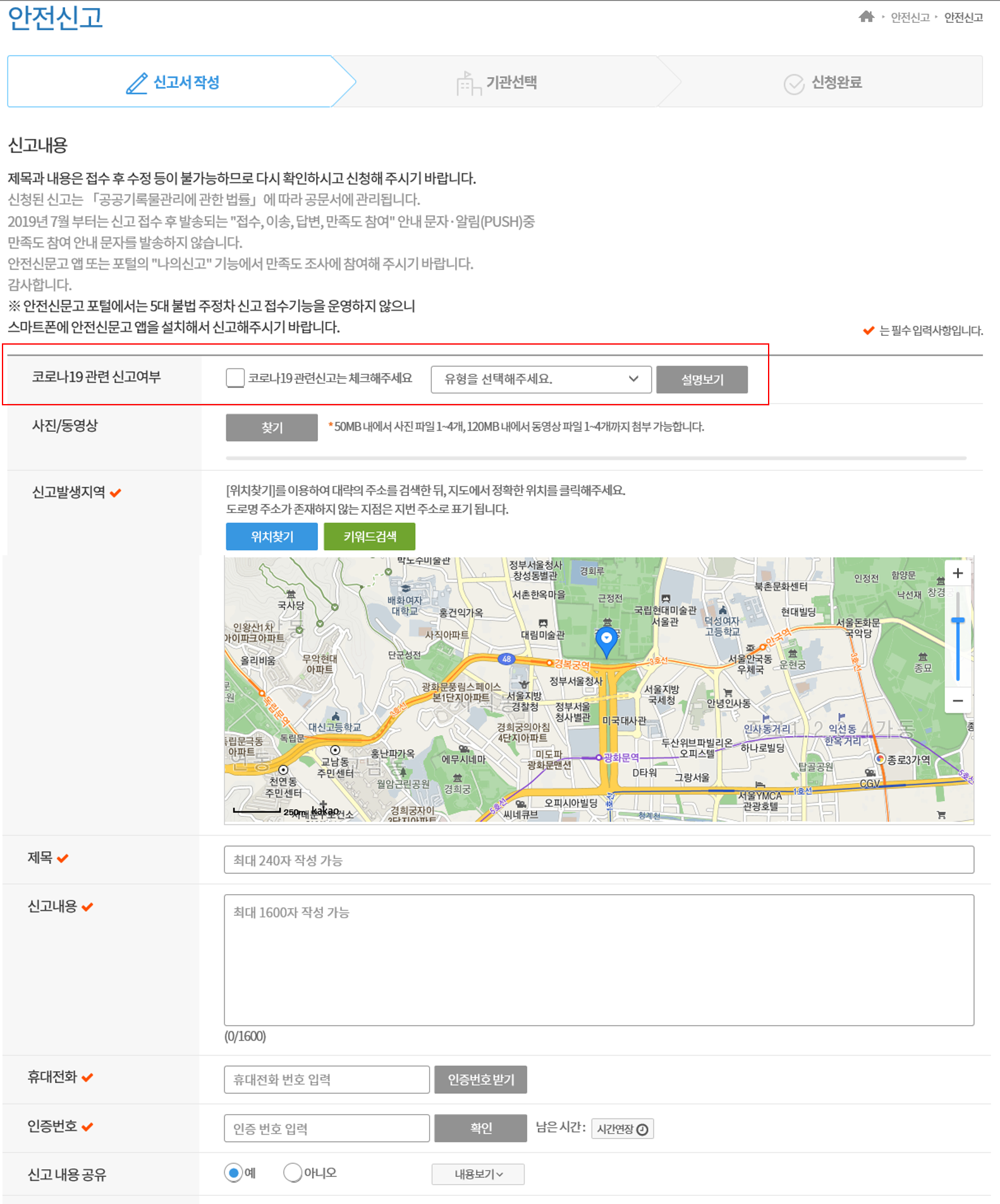 안전신고: 안전신문고 內 코로나19 안전신고 개설 (07.01~)