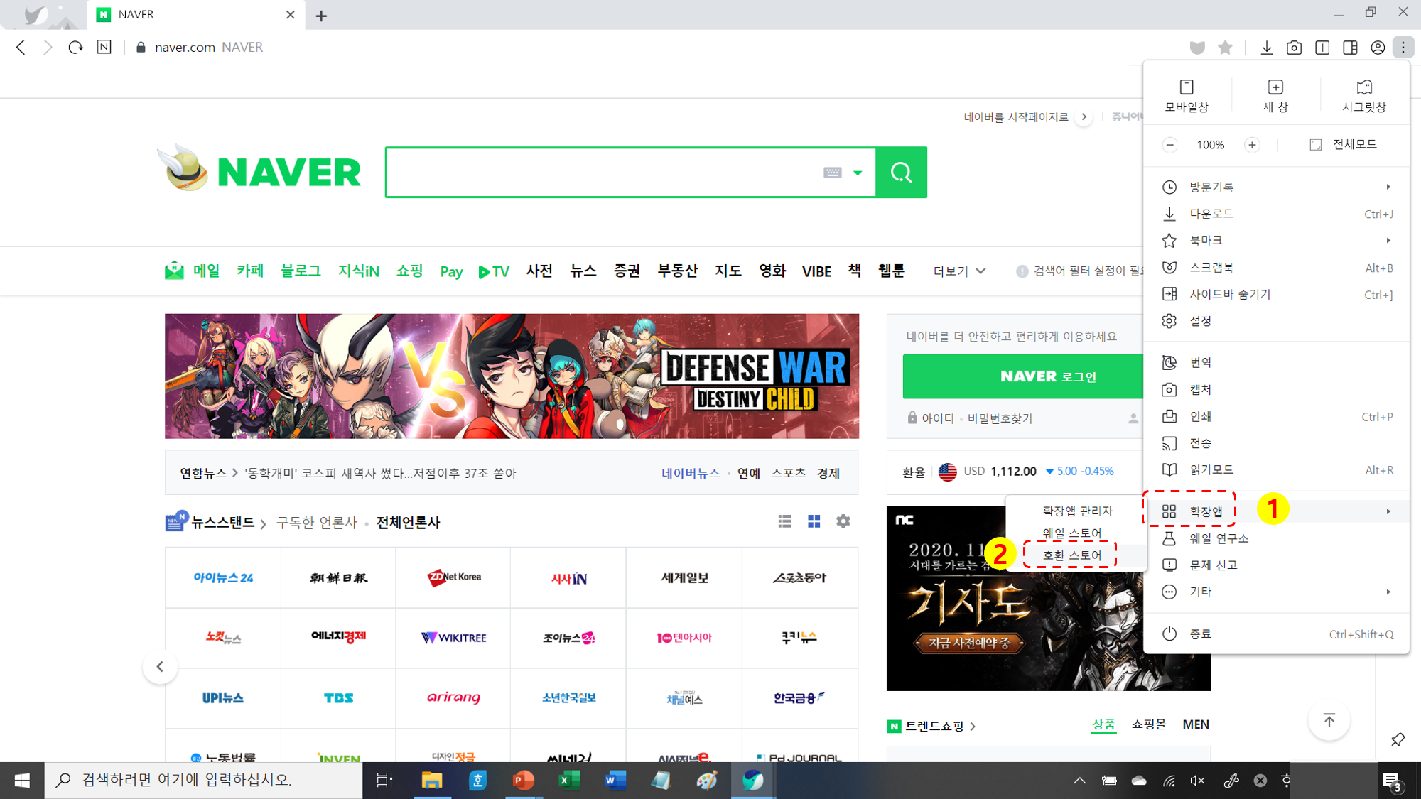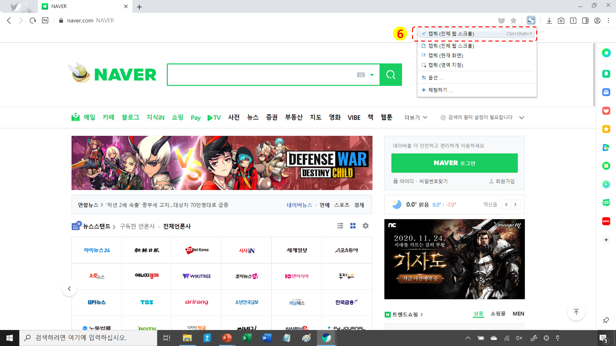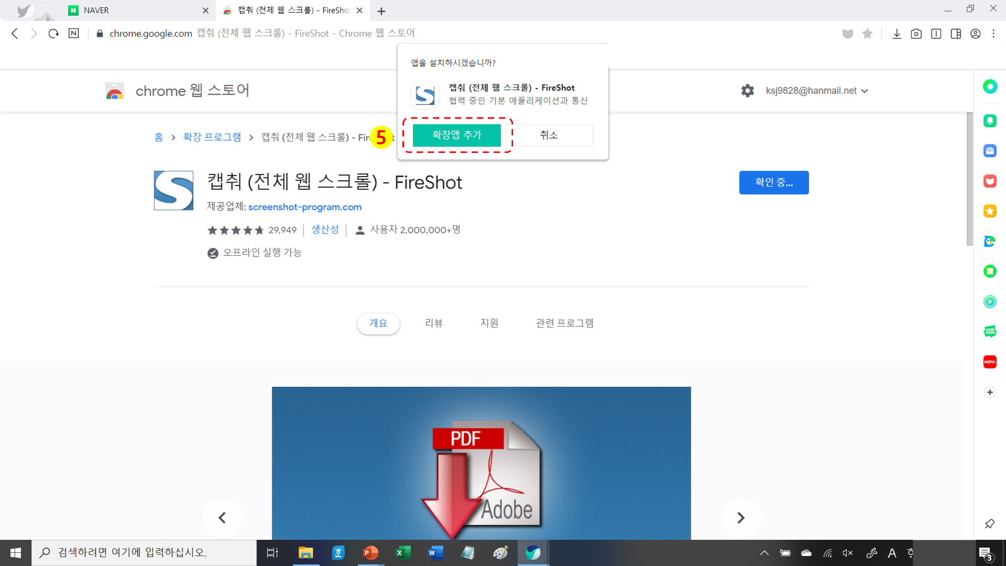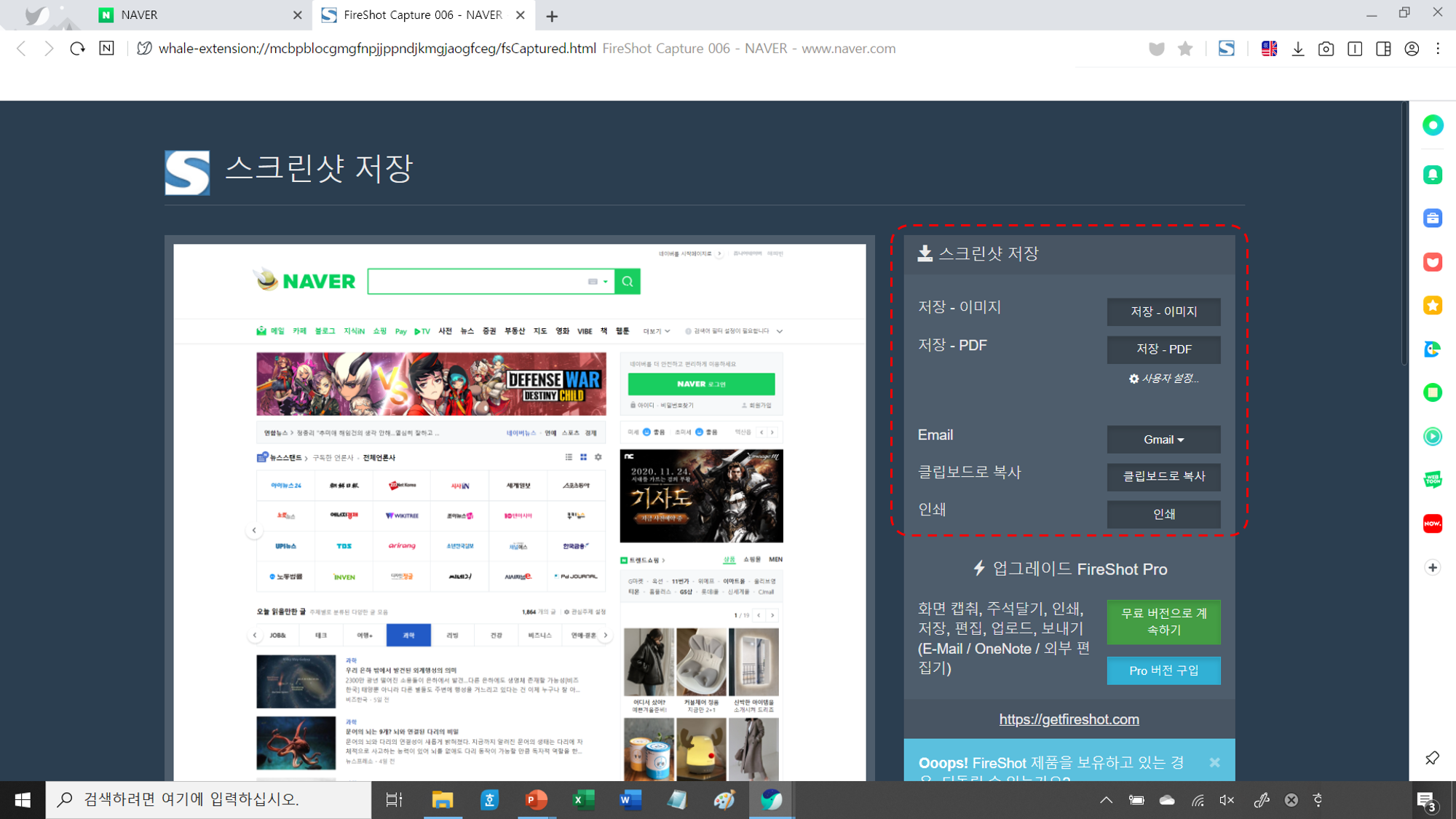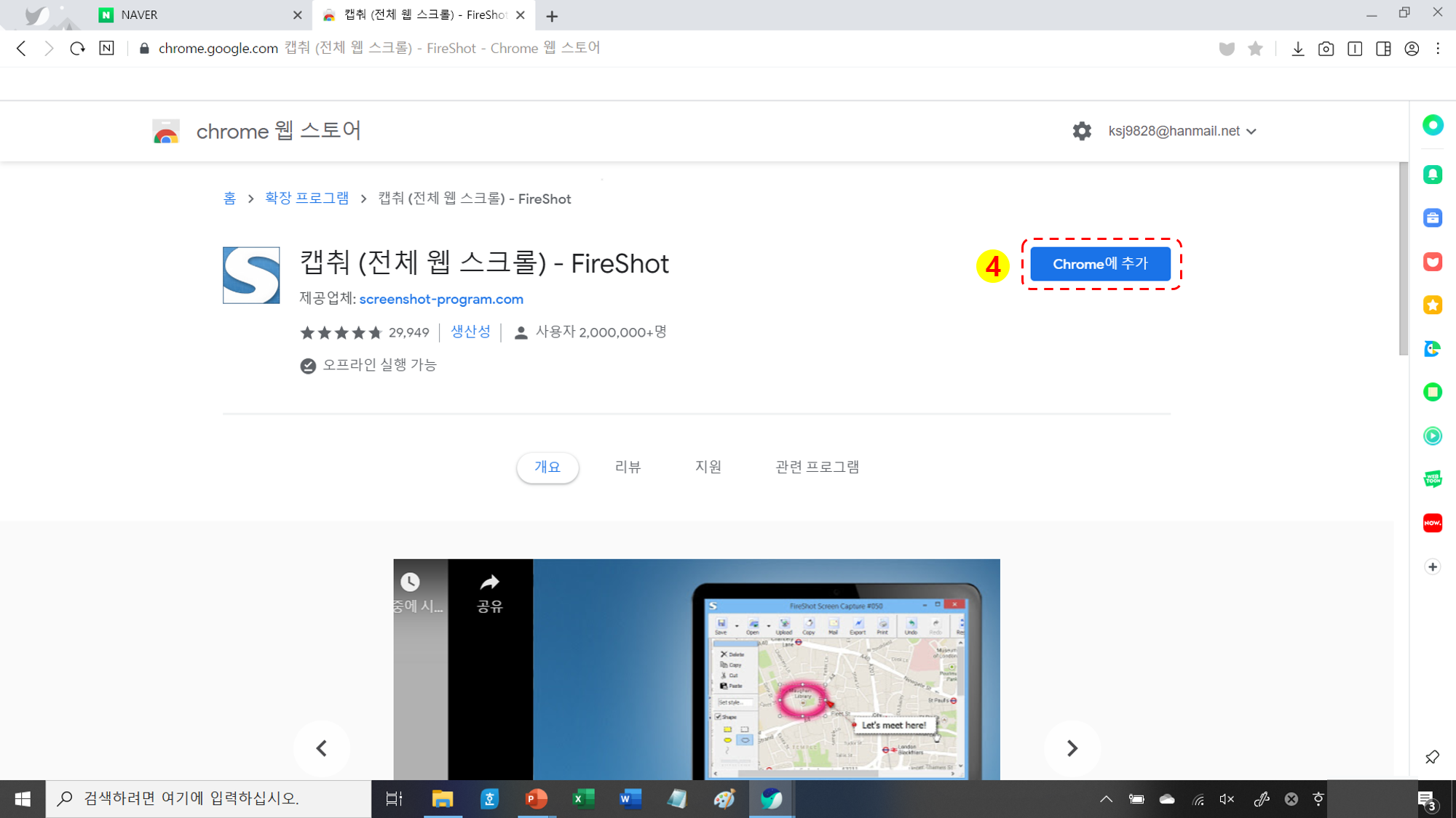 2. 스크롤 캡쳐 방법 (네이버 접속 → 확장 앱 → 호환 스토어 → 스토어 검색창에 fireshot 검색 → 설치
