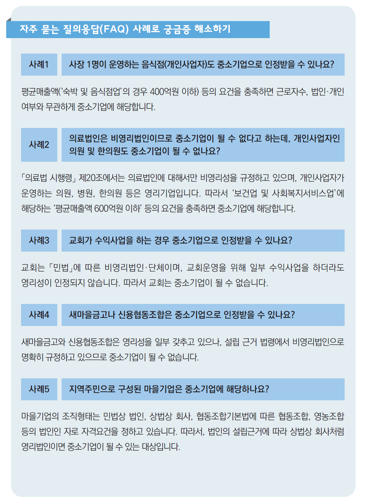 중소기업 기준은 영리기업 또는 비영리 사회적기업을 대상으로 적용하며, 규모기준과 독립성기준을 모두 충족해야 중소기업에 해당합니다.