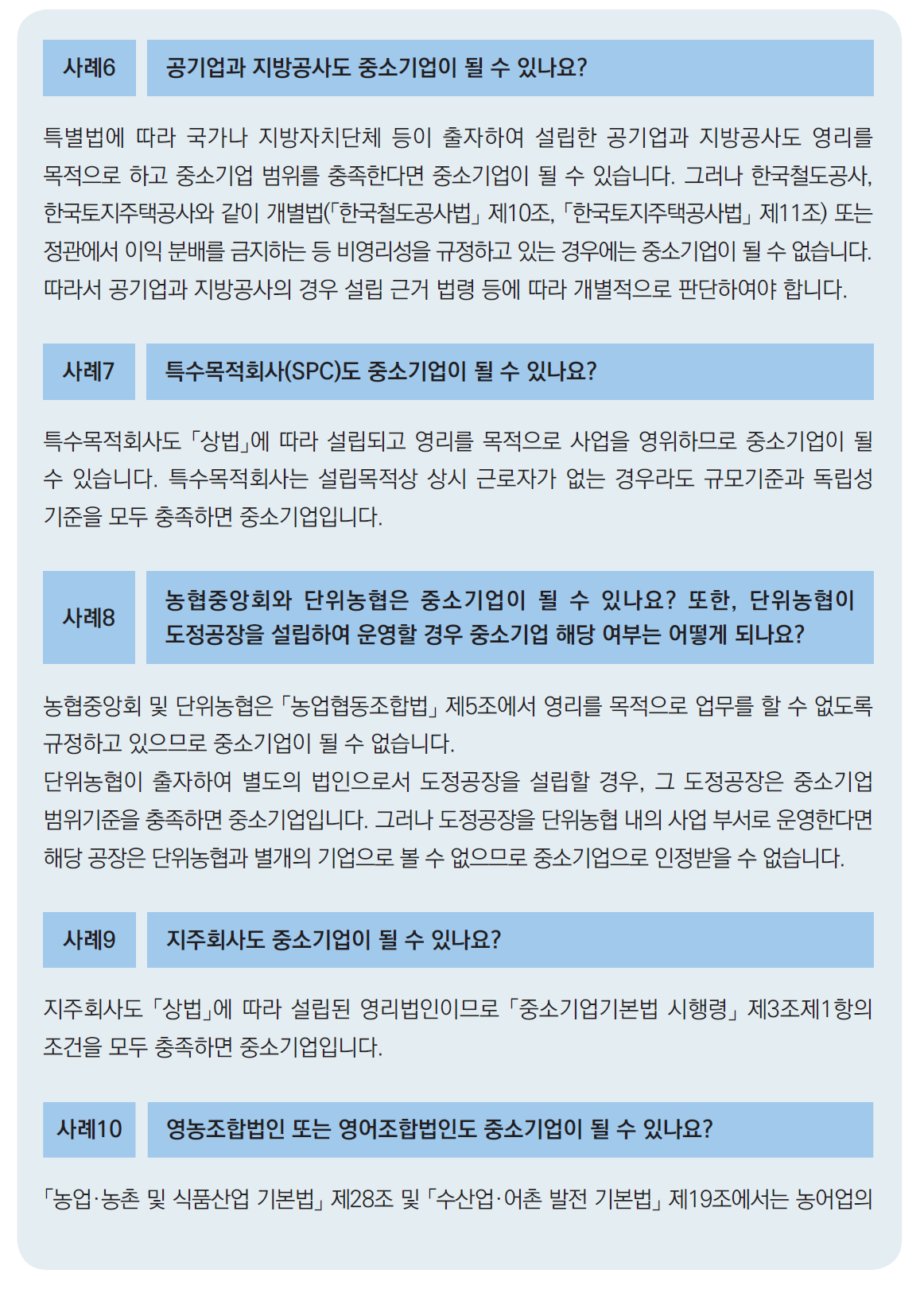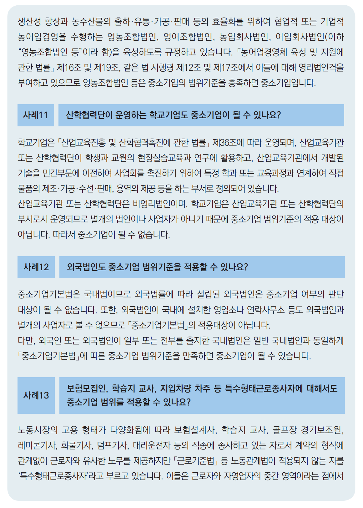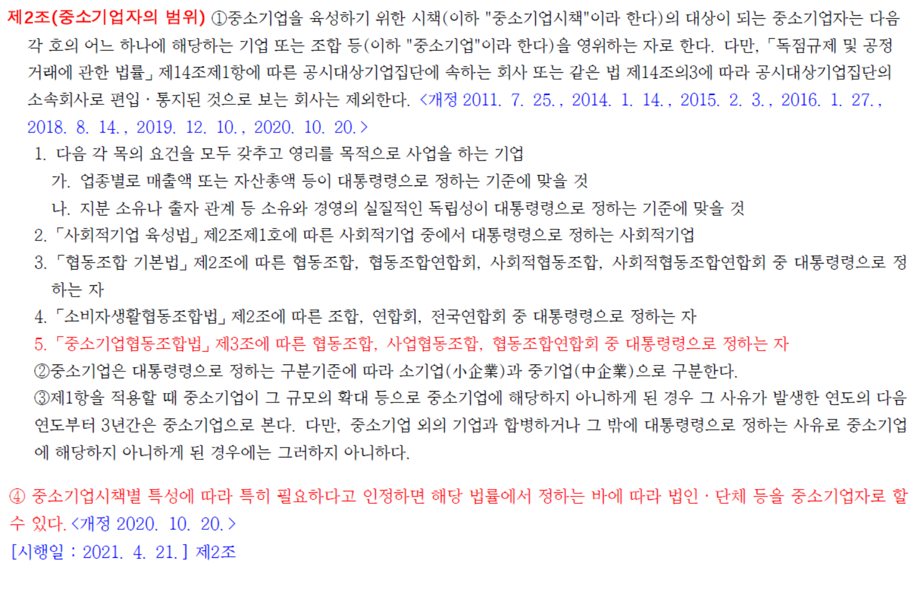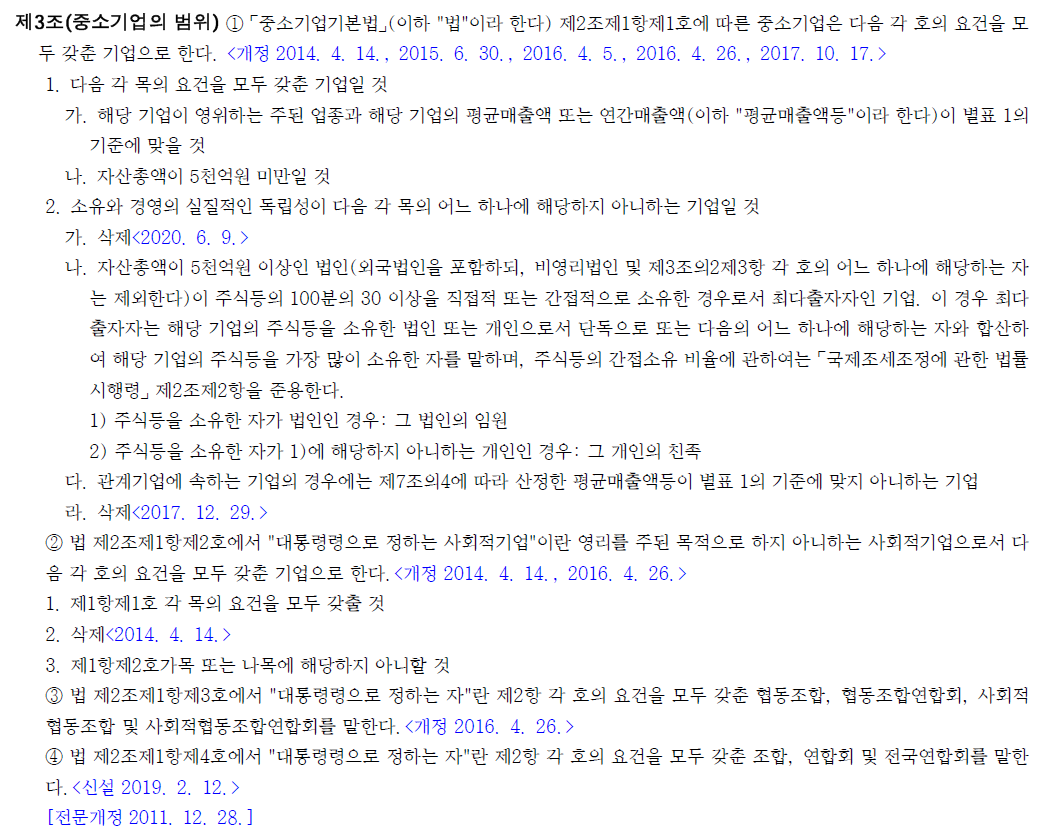 중소기업범위기준 (중소기업기본법 제2조 및 같은법 시행령 제3조)