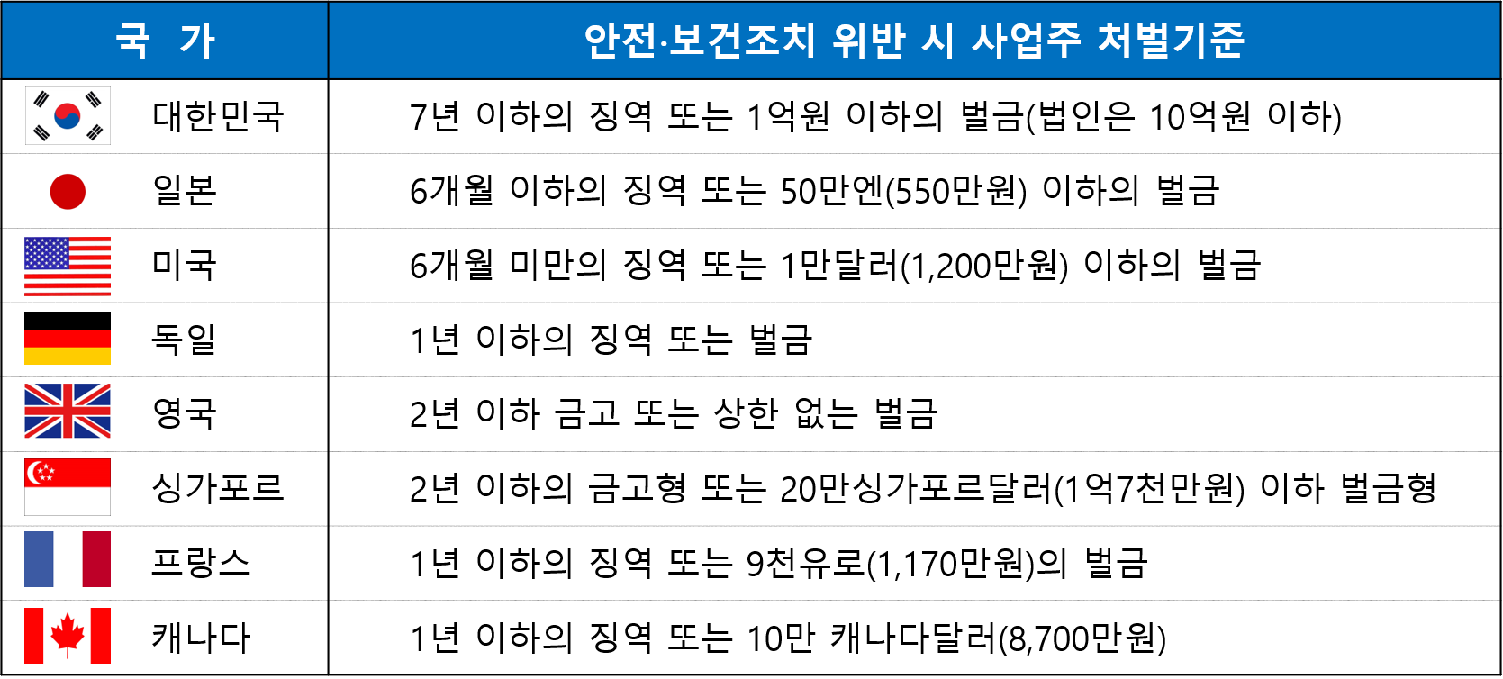 단, 이법 시행 당시 개인사업자 또는 50인 미만 사업장에 대해서는 안전보건 조치 및 보건조치의무 이행을 위한 제도 마련을 전제로 공포 후 4년이 경과한 날부터 시행한다고 합니다.