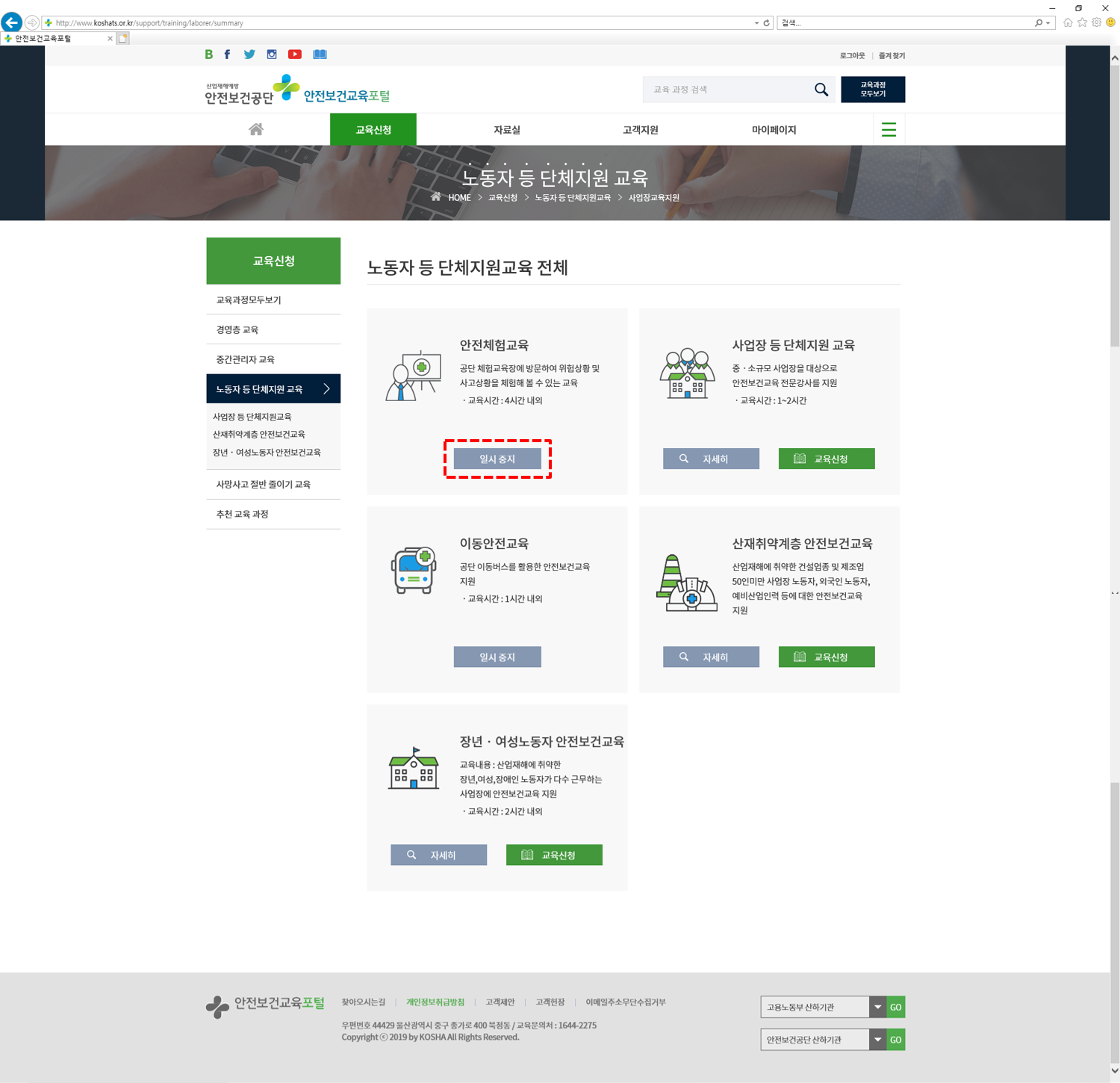 안전보건공단 안전보건교육포털 → 노동자 등 단체지원 교육 선택