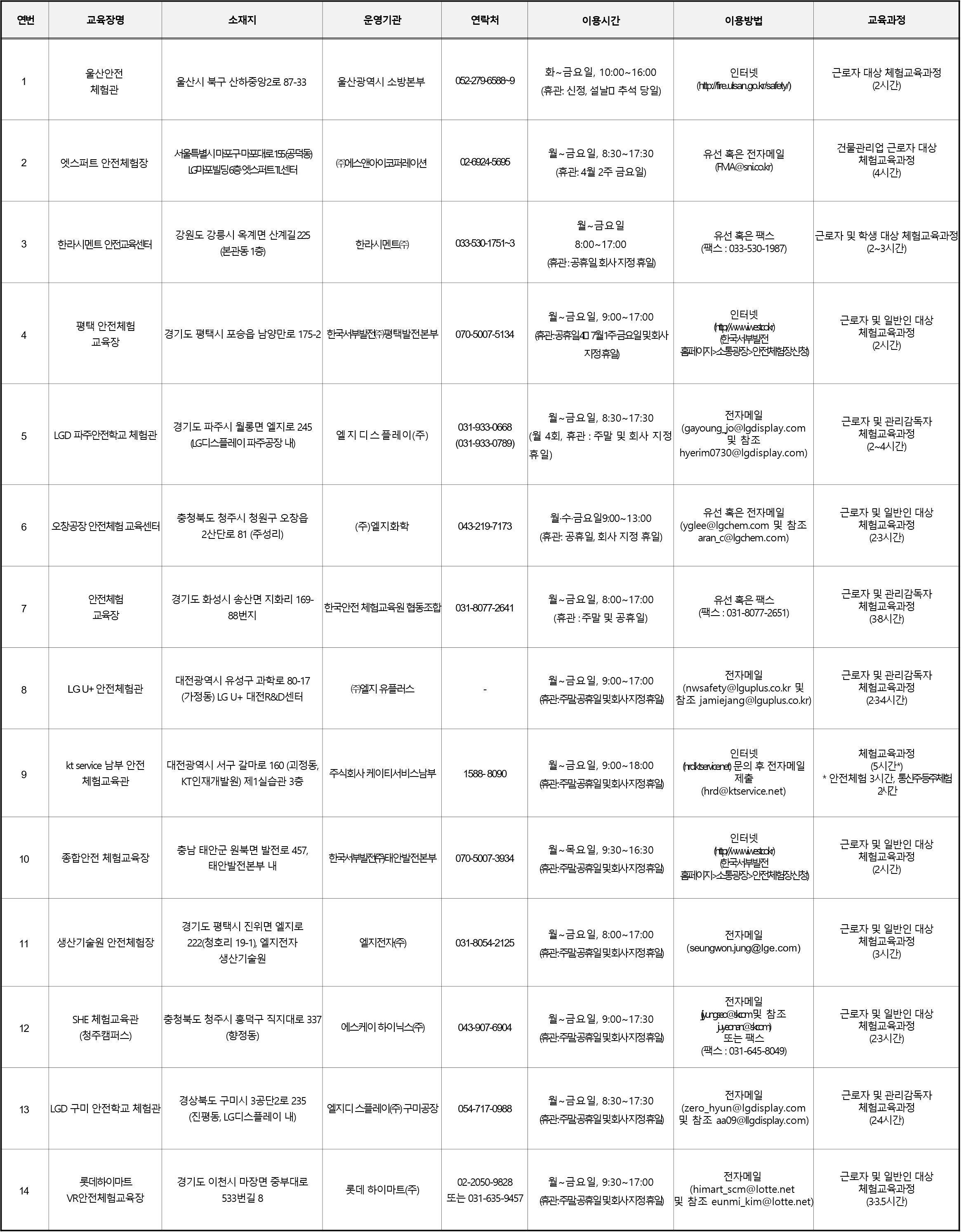안전보건공단 교육신청(사내교육,안전보건관리담당자양성교육,안전체험교육,건설업기초안전보건교육 기관검색등)