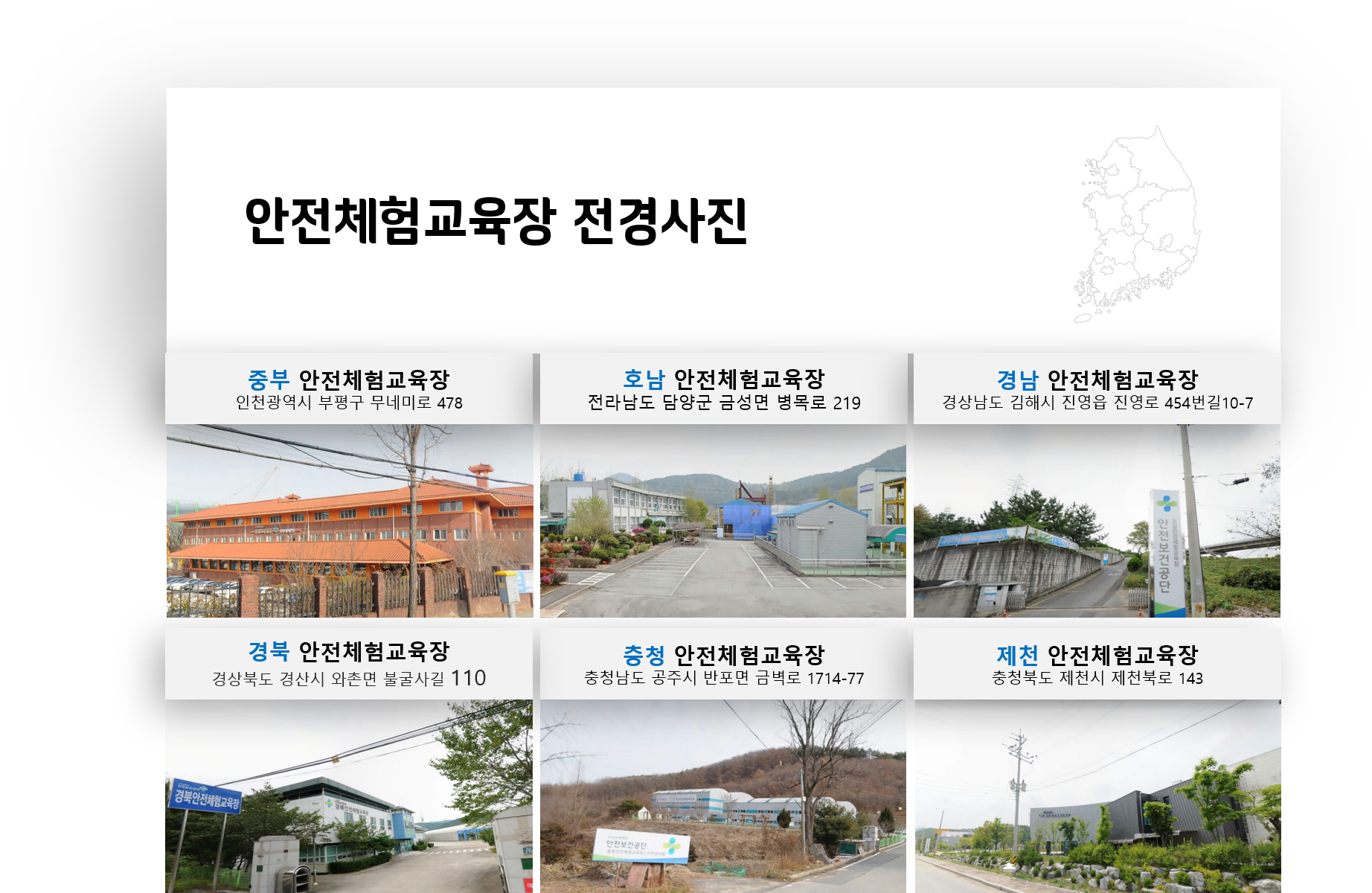 전국에 안전체험교육장을 운영중이다. 한번쯤은 가볼만한 곳이니 관심있게 봐두었다 가보는것을 추천한다. 물론 혼자가기는 좀 뻘쭘하다. 대부분 회사에서 단체로 오다보니 혼자가게되면 소외감을 느낄수 있다. 개인적으로 오래전에 2번인가 3번정도 다녀왔던걸로 기억한다. 내기억으로는 꽤나 유익했던것같다.
