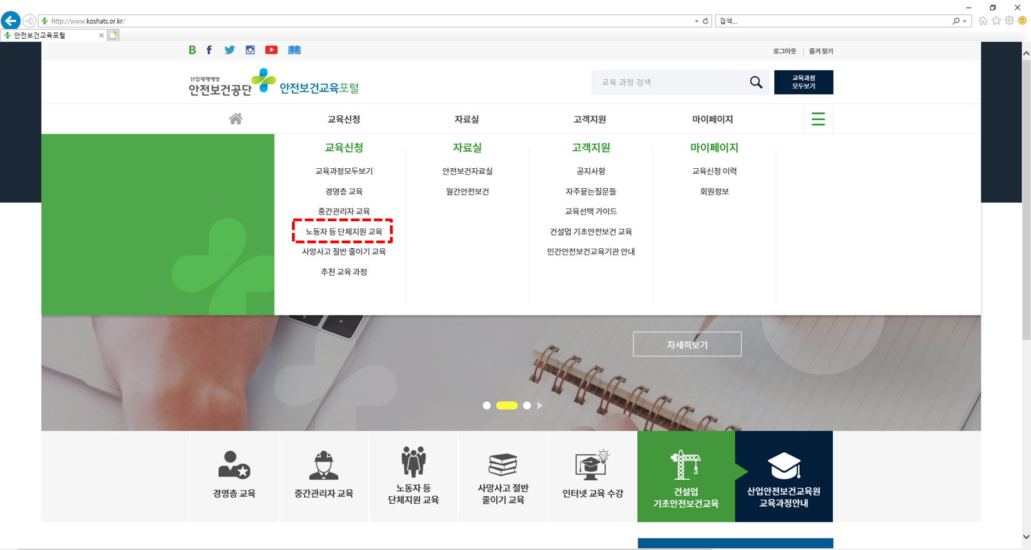 안전보건공단 교육신청(사내교육,안전보건관리담당자양성교육,안전체험교육,건설업기초안전보건교육 기관검색등)