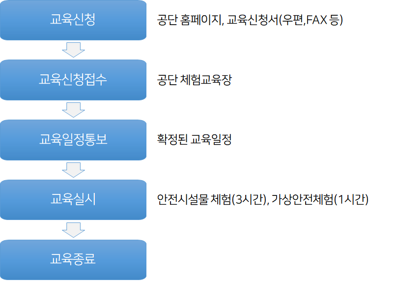 안전체험교육 신청 접수는 공단 홈페이지에서 신청이 가능합니다.