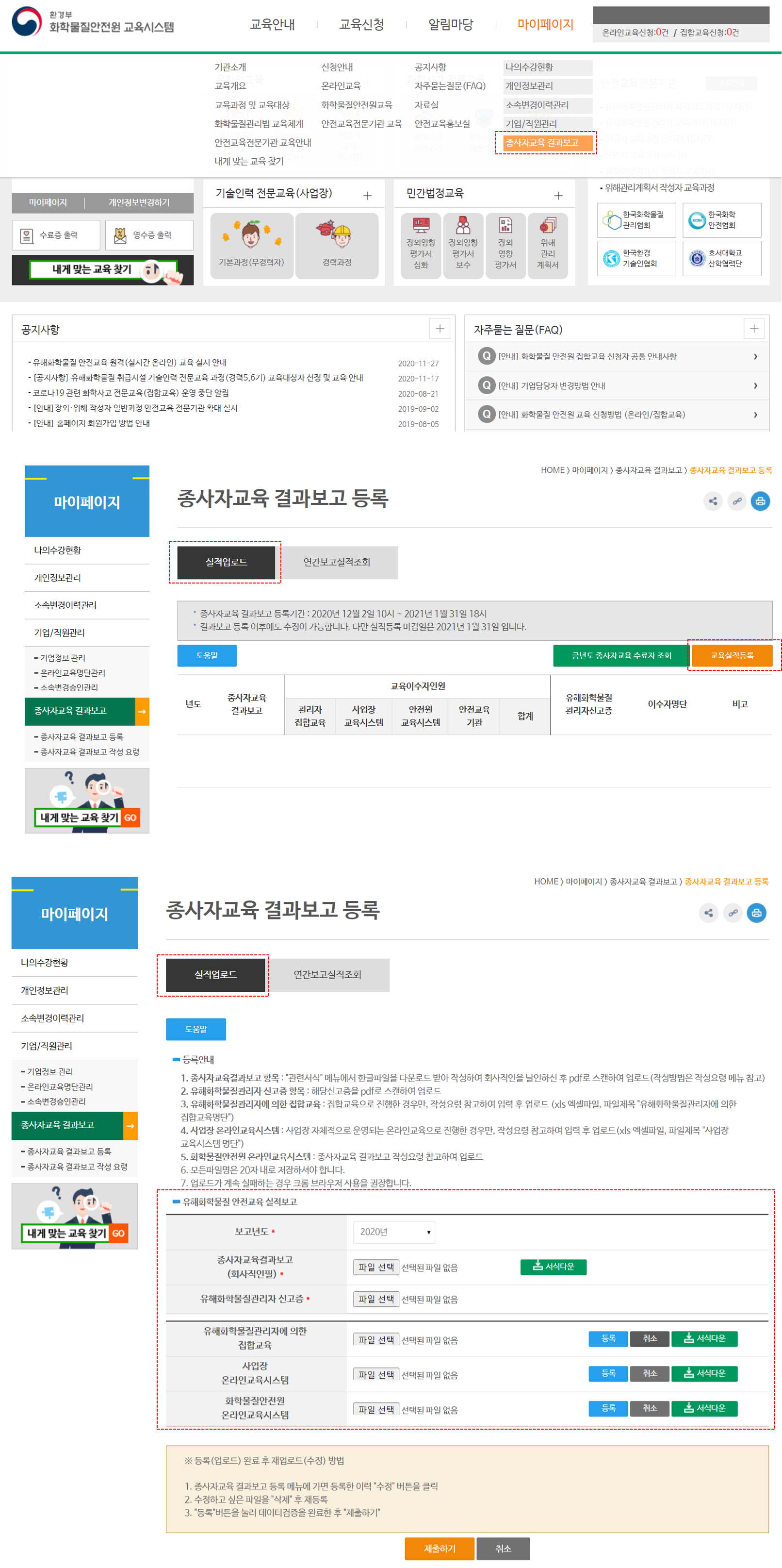 - 교육실적보고 등록기간: 매년 12월 초 ~ 다음 해 1월 말 까지